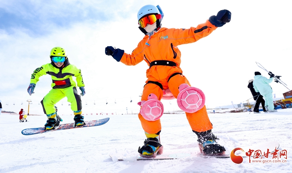 1月24日,在张掖肃南裕固族自治县的康乐草原祁连山滑雪场,冰雪爱好者和游客携孩子一同迎风驰雪,乐享冰雪运动的激情。他们在运动中强健体魄、磨炼意志,同时迎接即将到来的新春。