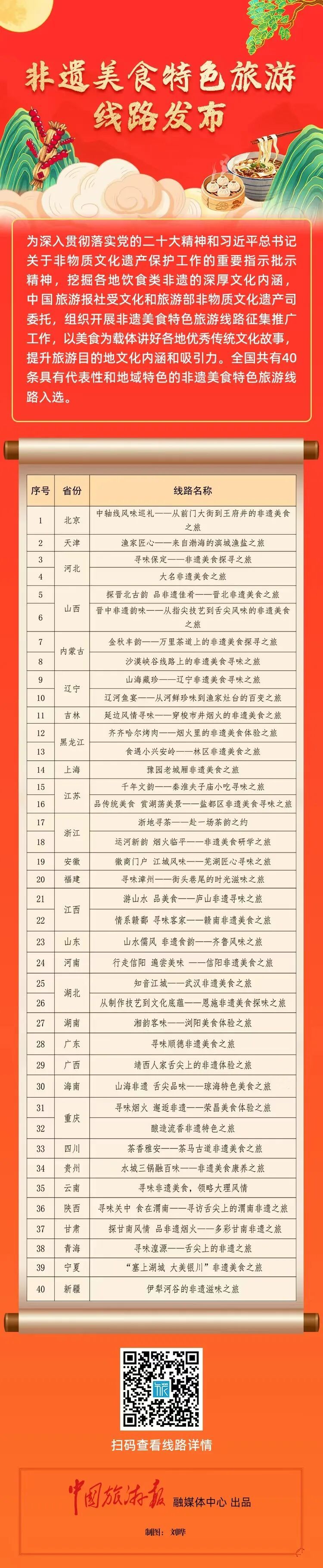 此次线路征集工作由文化和旅游部非物质文化遗产司委托中国旅游报社开展,自2025年8月份启动以来共收到全国各地报送的非遗美食特色旅游线路170条。此次发布的40条线路完成了一场跨越中国的味觉旅行推荐。从江南水乡到塞北草原,从岭南骑楼到东北热炕,非遗美食是旅行的最佳向导,更是文化的鲜活载体。