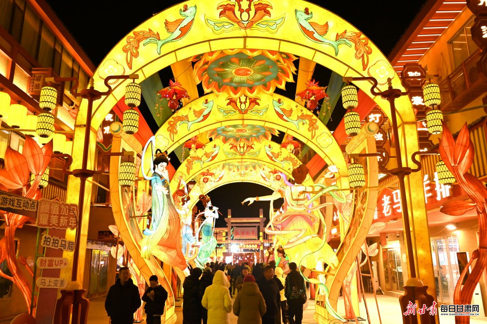 夜幕下的敦煌流光溢彩。沙洲夜市等地张灯结彩,特色花灯与城市夜景交相辉映,吸引众多游客驻足观赏、拍照留念。白天的敦煌同样热闹非凡,社火表演、非遗展示等民俗活动轮番登场,演员们身着盛装,载歌载舞,传递着新春的祝福。