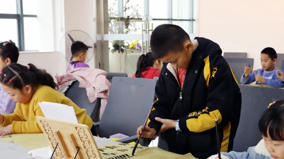 离开绘画教室,记者循着稚嫩的歌声来到声乐课堂,银铃般的合唱声此起彼伏,孩子们跟着老师打着节拍,稚嫩的歌声穿透门窗;电子琴课堂中,小家伙们端坐在琴凳上,指尖在琴键上跳跃,成就感写满稚嫩的脸庞。书法教室则透着安静与专注,墨香袅袅中,孩子们握起毛笔,一笔一划练习笔画、汉字,或挺直腰板,或踮着脚尖,小脸上满是认真。老师穿梭在课桌间,俯身纠正握笔姿势,纸张与毛笔的摩擦声,成为最治愈的背景音。
