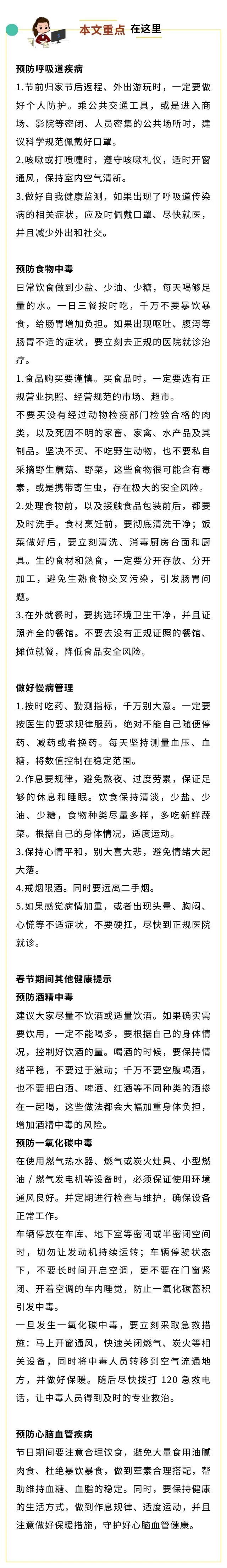 本月恰逢春节长假,人员出行、流动频繁。为了守护您和家人的健康,请继续做好个人防护与健康管理,做自己健康的第一责任人。