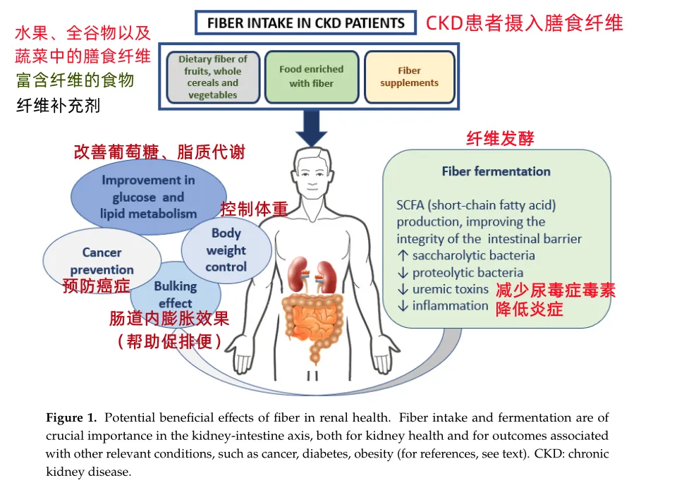 摄入充足的膳食纤维,可以通过多种途径如改善糖代谢、脂代谢、调节肠道菌群、降低炎症反应等,来促进肾脏健康,延缓慢性肾病患者肾功能下降和降低死亡风险。