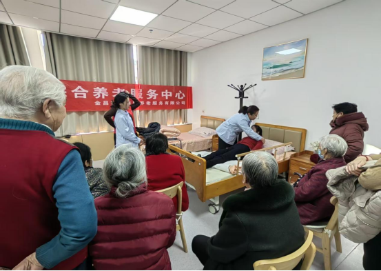 位于餐厅二楼的732平方米综合养老服务中心,是专为高龄、独居、孤寡及失能老人打造的“照护天地”。中心于2025年8月进行了提档升级,改造后的服务中心划分出日间照护区、康复理疗区等多个功能区域,配备专业护理床、康复训练器械等硬件设施,为老年人提供日间托管、康复理疗、健康监测、精神慰藉等一站式养老服务。针对辖区高龄、失能、半失能老人的需求,中心组建专业护理团队,提供助浴、助洁、助医等上门服务。与此同时,平价便民大药房的改造同步完成,优化药品陈列布局,增设老年人常用药专柜,配备执业药师提供用药指导,并免费为辖区老年人量血压、测血糖,让老人在家门口就能享受到便捷、安全的健康服务,解决了“买药难、用药忧、价格高”的问题。