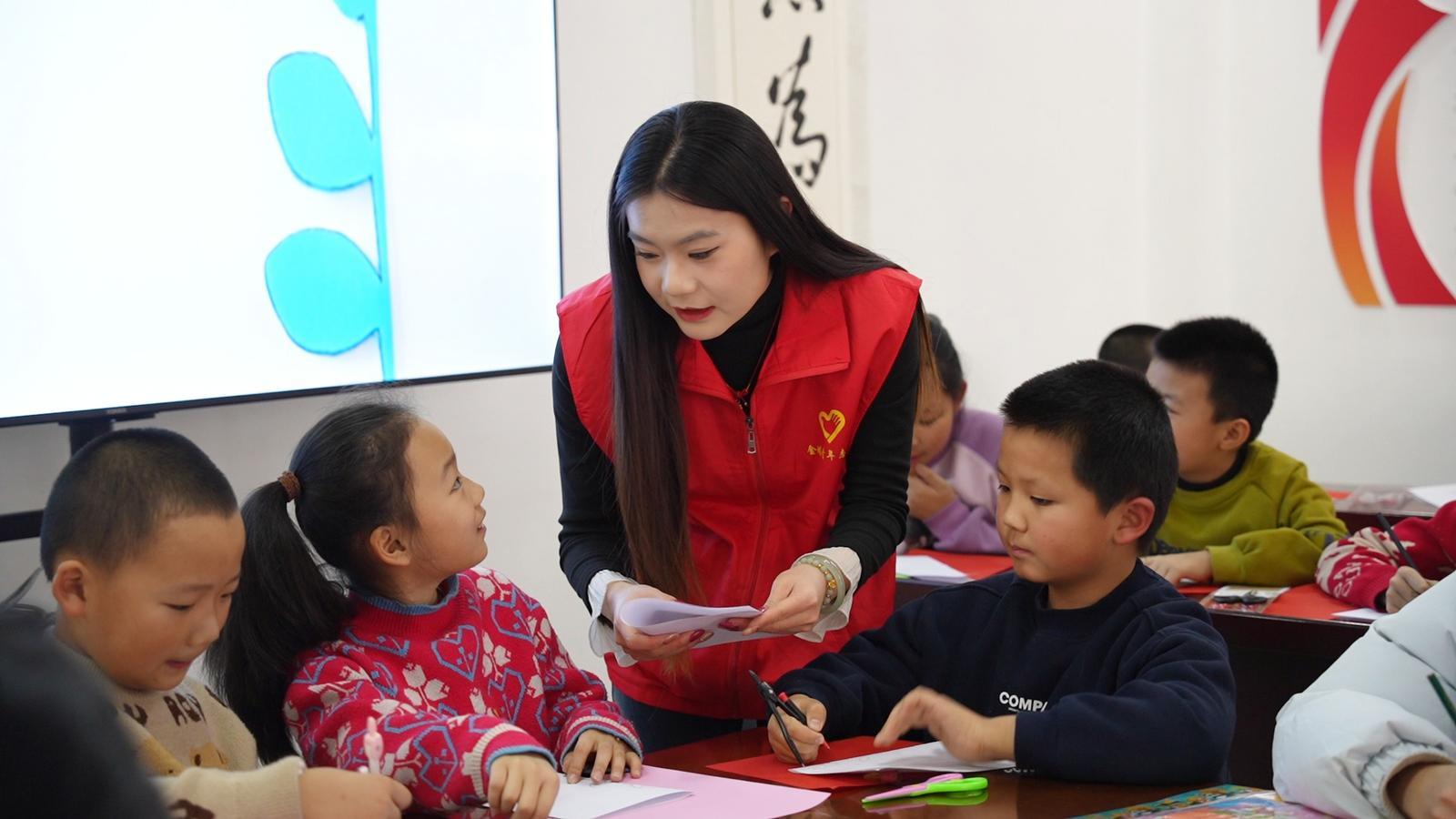 “大家一起来看大屏幕,哪位小朋友知道这是用什么制作的?”近日,金塔县西北街社区红领巾爱心托管班里暖意融融,新疆师范大学学生徐洁正和青年志愿者同伴一道,为社区孩子们细致讲解剪纸艺术的历史脉络、文化内涵与美好寓意,指尖翻飞间,一张张红纸渐渐绽放出灵动模样。