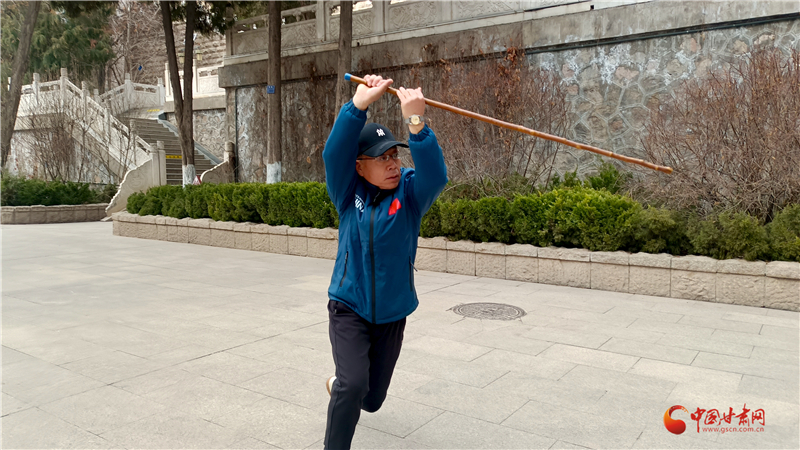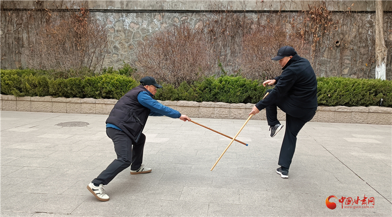 “鞭杆自古就有,甘肃天水、陇南、定西一带也有习武者,我父亲总结了兰州缠海缠杆体系,为鞭杆百花园再添新力量。”王建国介绍兰州缠海鞭杆体系。