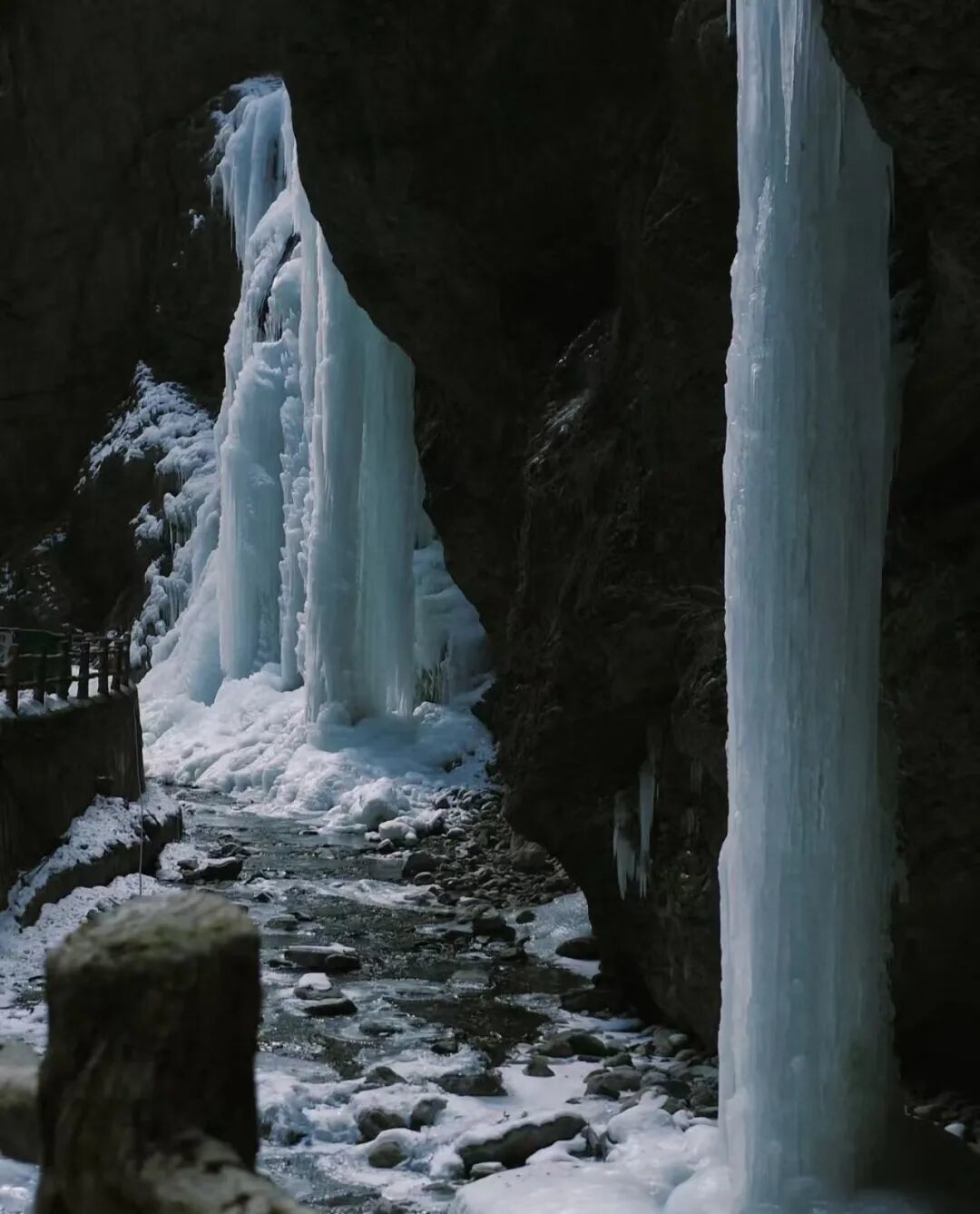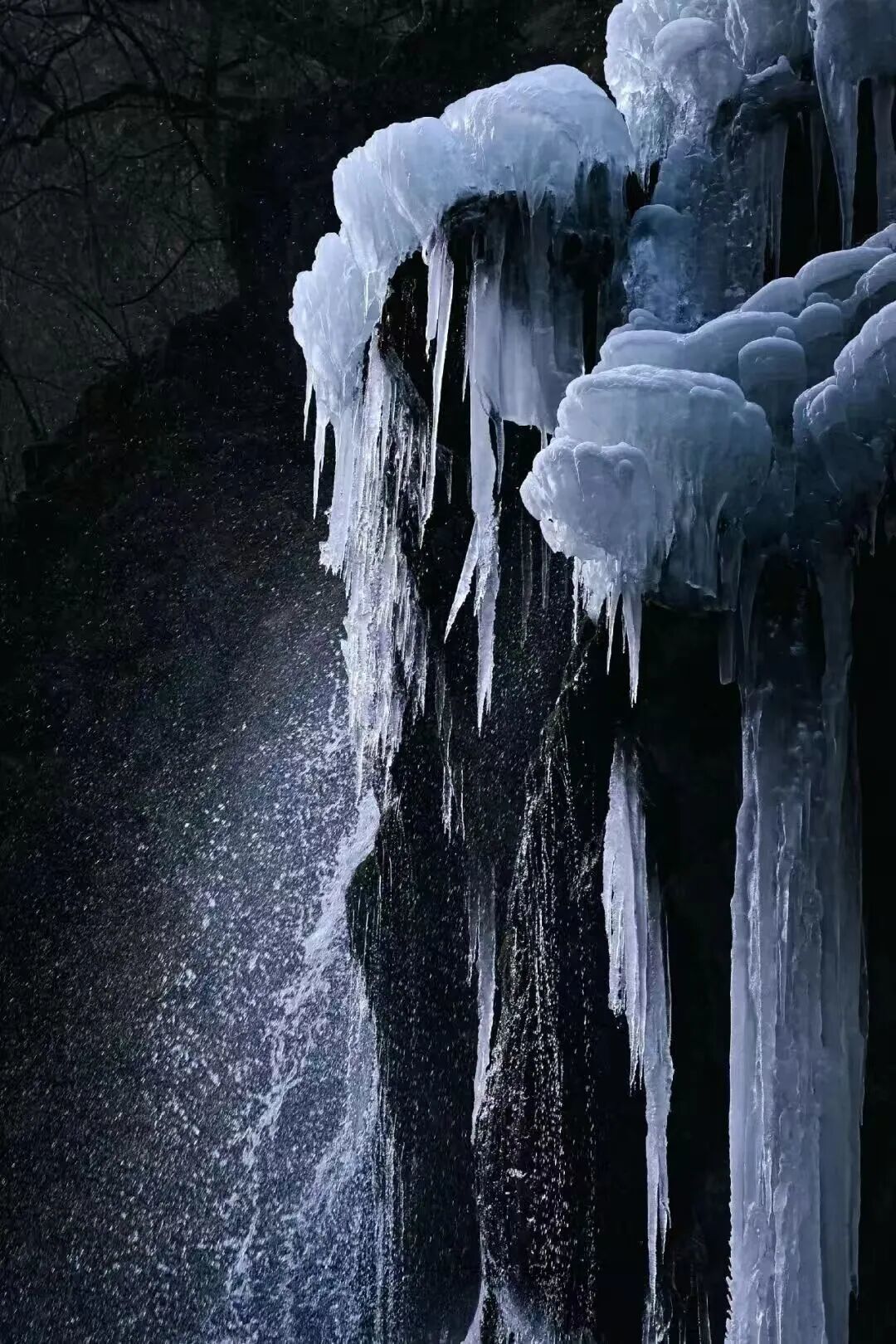 奔涌的溪流化作垂落万仞的冰帘