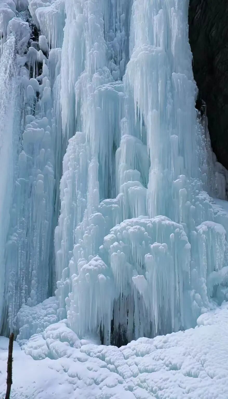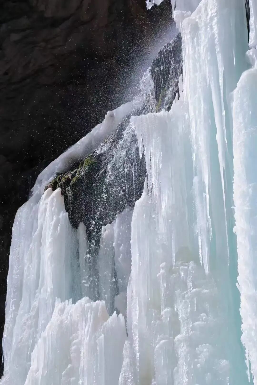 冰柱、冰笋、冰花在崖壁间肆意生长