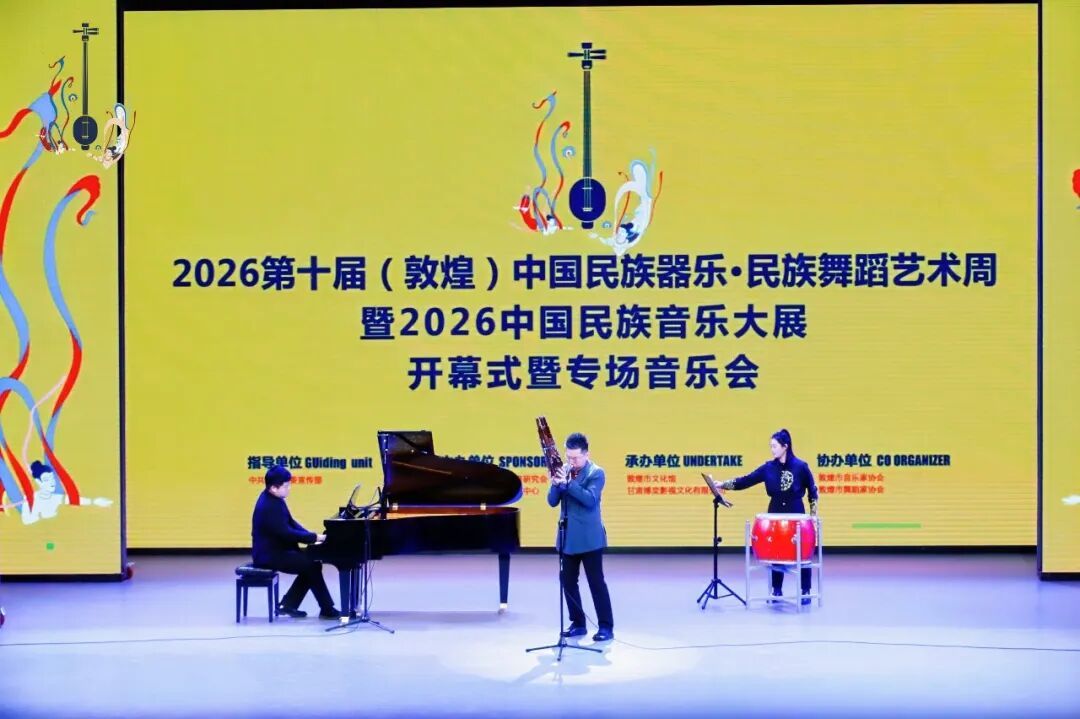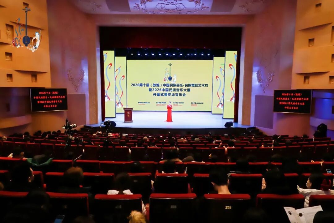 2月8日晚,第十届(敦煌)中国民族器乐·民族舞蹈艺术周暨2026中国民族音乐大展在敦煌市文化馆飞天剧院盛大启幕。本次活动由中共敦煌市委宣传部指导,甘肃省青少年艺术教育研究会、敦煌艺术应用推广研究中心主办,敦煌市文化馆、甘肃博奕影视文化有限公司承办,敦煌市音乐家协会、敦煌市舞蹈家协会协办。