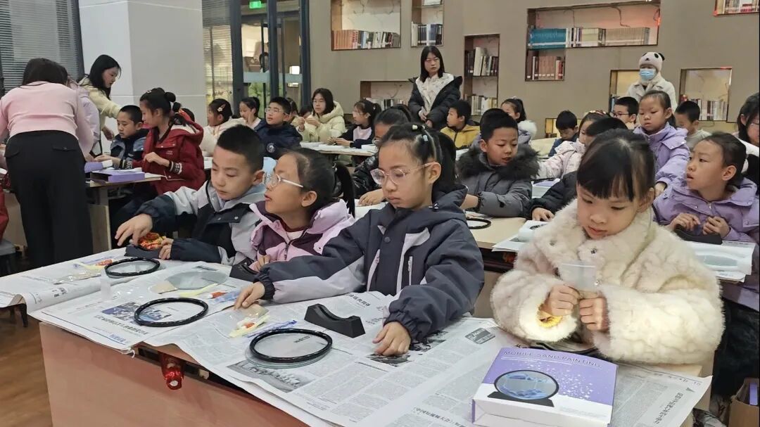 在流沙画原理讲解环节,老师用通俗易懂的语言拆解制作奥秘:流沙画依靠沙子通过气泡缝隙自然流动形成图案,每一幅都独一无二。气泡越少、缝隙越大,沙子流速越快;气泡越多、排布越密,沙子流动越慢,不同流速可形成层次丰富、意境优美的画面。抽象的知识与直观演示相结合,充分激发了孩子们的探索兴趣。