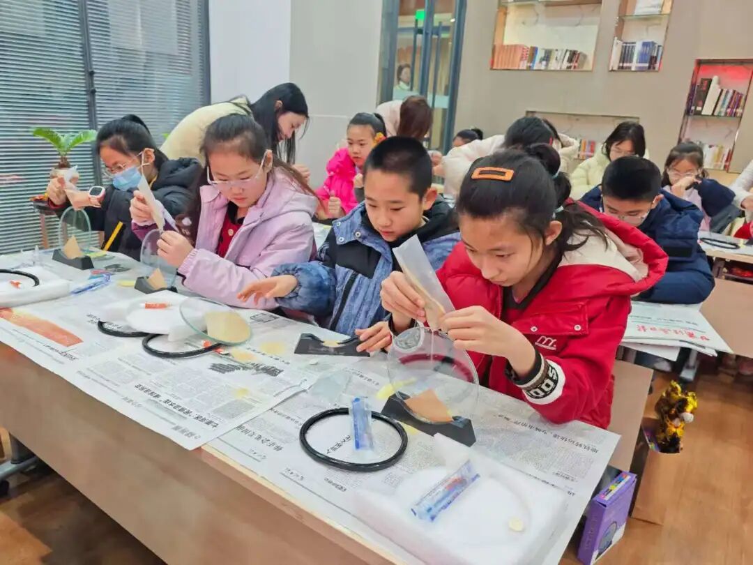 动手创作环节,孩子们在老师指导下,细心调配沙粒、调整容器气泡、控制流沙速度。细沙在透明容器中缓缓滑落,勾勒出别样景致,每一次翻转都呈现出别样美感。孩子们专注创作、互相协作,看着手中独一无二的流沙画作品,脸上满是欣喜与自豪,现场洋溢着欢乐温馨的氛围。