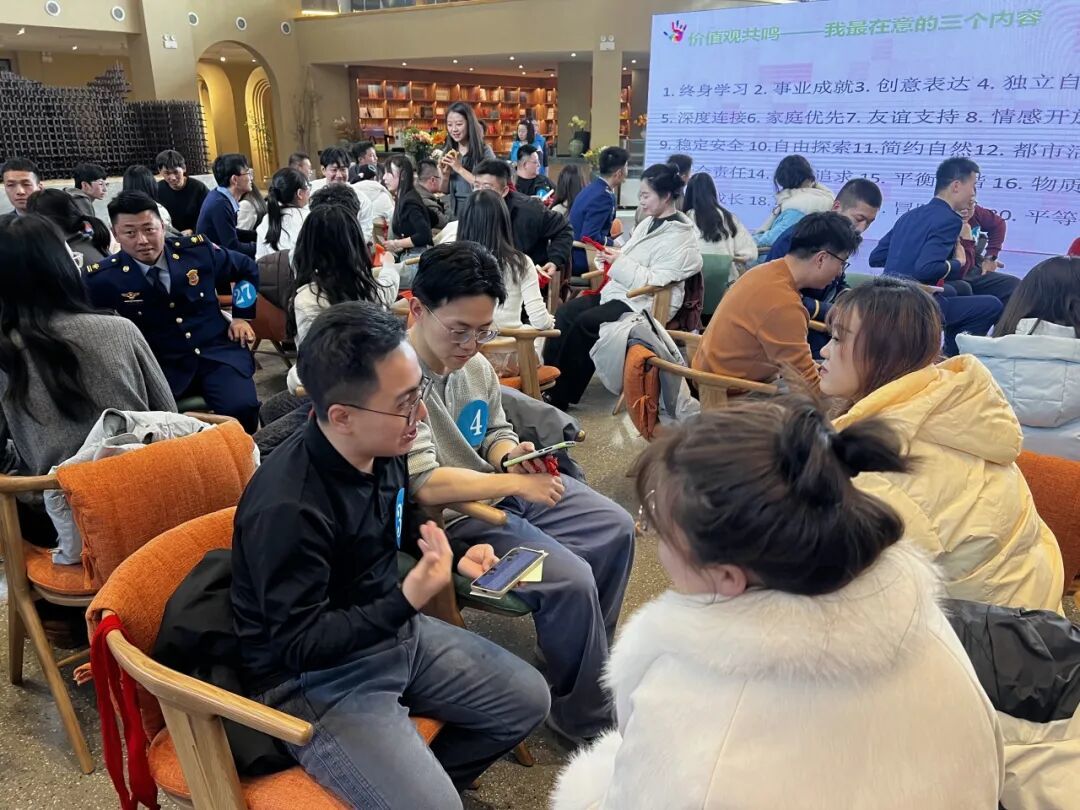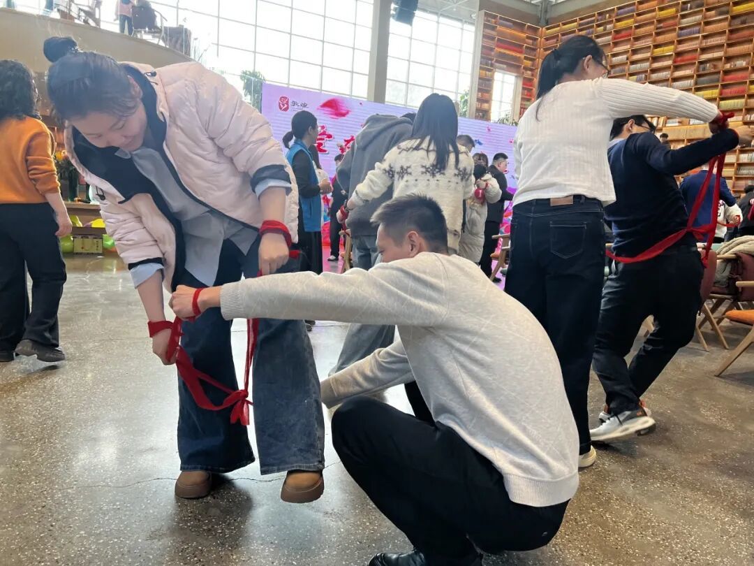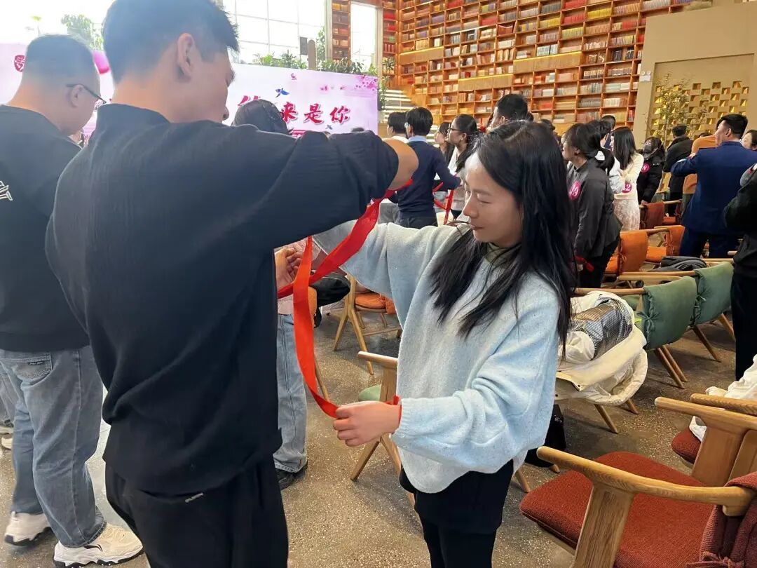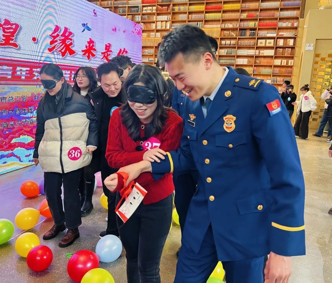 在精心布置的温馨氛围中,青年们通过自我介绍、趣味游戏等环节增进交流。其中“背对背夹气球”“心动牵手”等互动环节气氛热烈,促成多对青年现场牵手。