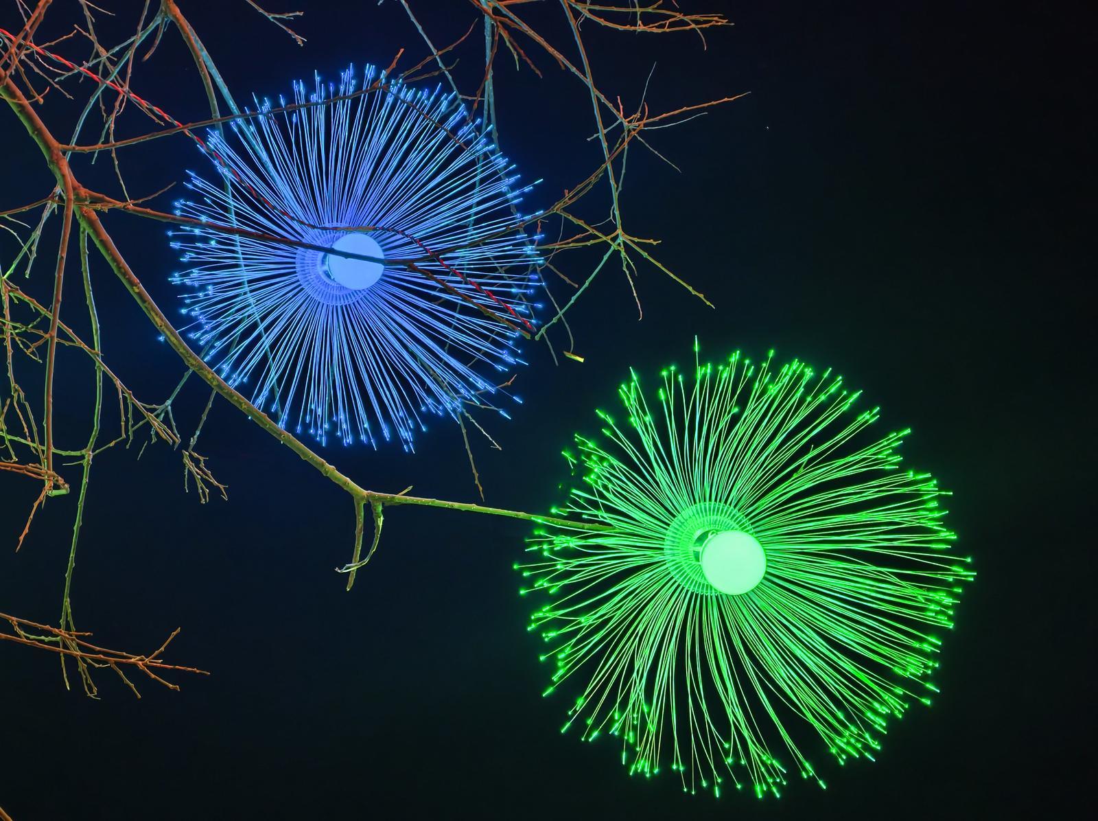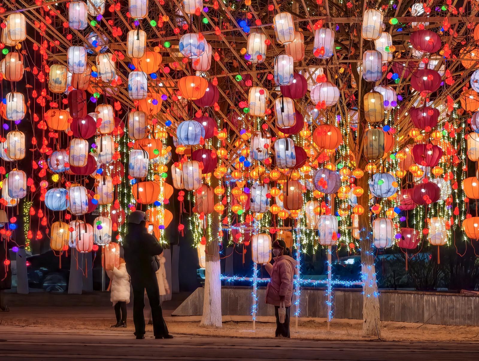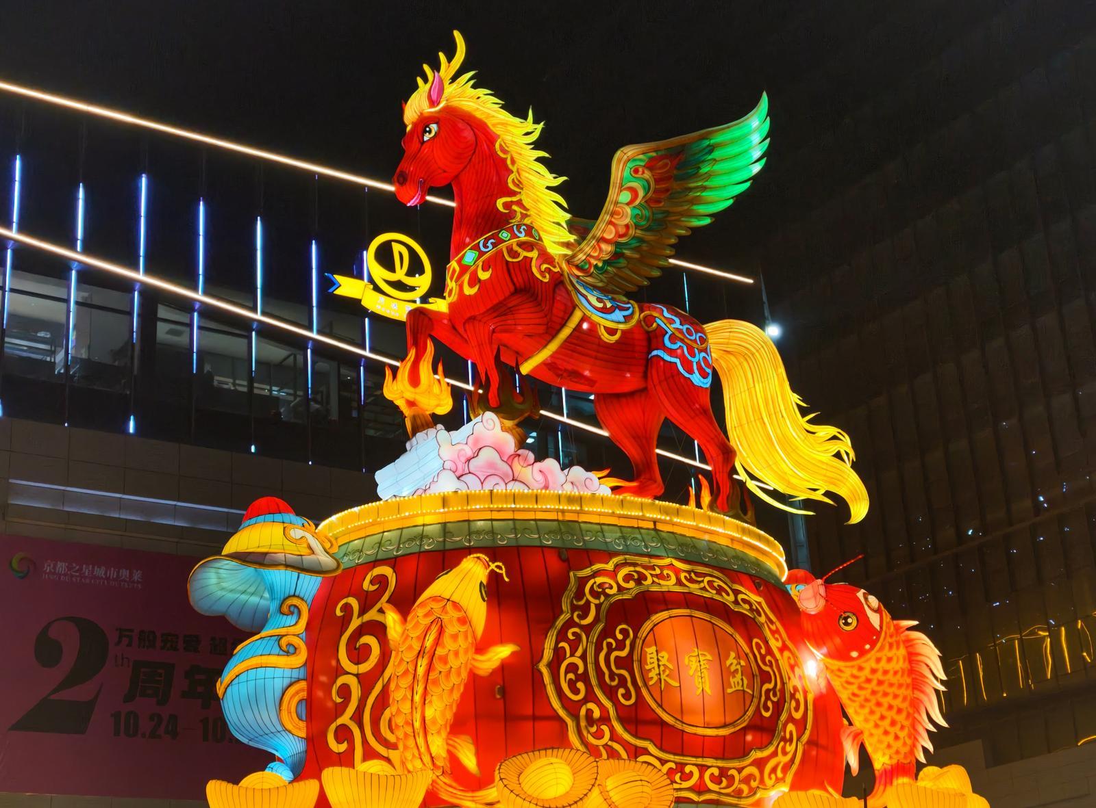 在京都之星商圈、中川商务中心周边,一组组融合企业文化与新区特色的9组主题灯组已经布置完成,尤其引人注目的是借鉴南京网红“神树”打造的4棵造型“福灯树”,璀璨夺目,吸引市民游客驻足观赏、拍照打卡,沉浸式感受新区浓厚的春节氛围。