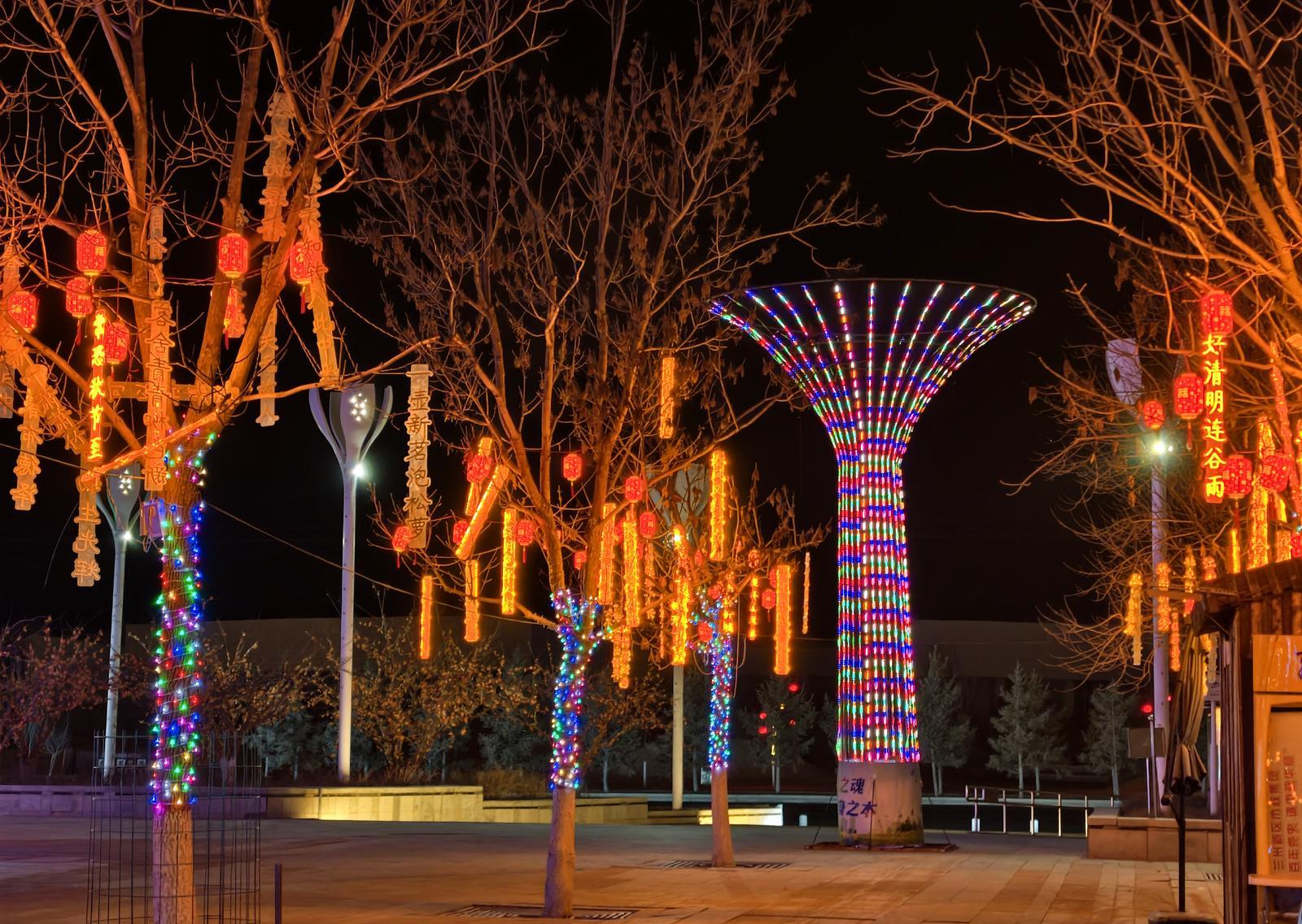 兰州新区客户端讯(兰州新区报记者 祁瑞龙)春节的脚步日益临近,兰州新区的大街小巷正悄然披上华彩新装。为了营造喜庆祥和的节日氛围,兰州新区市政集团绿洲公司全面推进春节亮化工程,以“二横二纵多点”的景观布局为主线,对城市主干道、商圈、景点、广场、公园、绿地、桥梁等重点区域进行灯光装饰与氛围营造,打造出一片流光溢彩的节日景象。