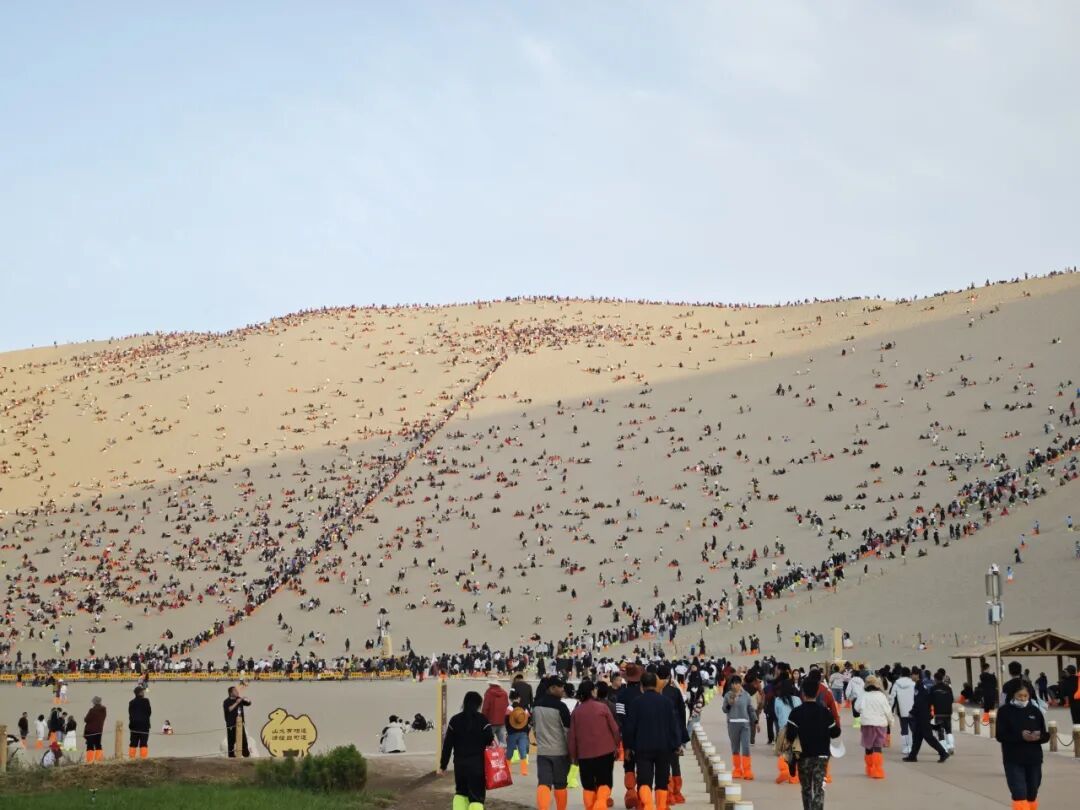 1.登山注意事项:鸣沙山沙质细腻松软,攀登过程较普通登山更为艰难。请您务必缓步攀登,量力而行,携带好手机、相机等贵重物品,以防落入沙中。患有心脏病、高血压等不适宜剧烈活动疾病的游客请勿登山。