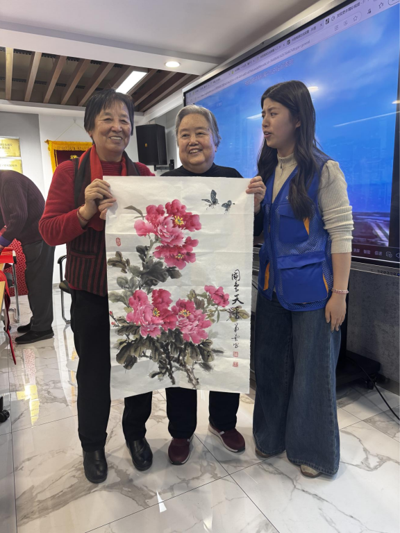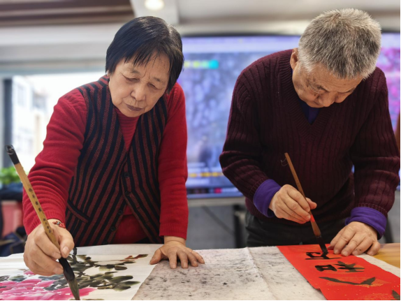 活动首站选在城关区酒泉路街道杨家园社区。在社区活动中心,兰州小草爱心社会工作服务中心的社工们与辖区内的退休老人们欢聚一堂,大家共同挥毫泼墨,书写寓意吉祥的春联和“福”字,现场还表演了丰富多彩的文艺节目。整个活动现场气氛热烈,欢声笑语此起彼伏,充满了浓厚的节日氛围和人与人之间的真挚温情。