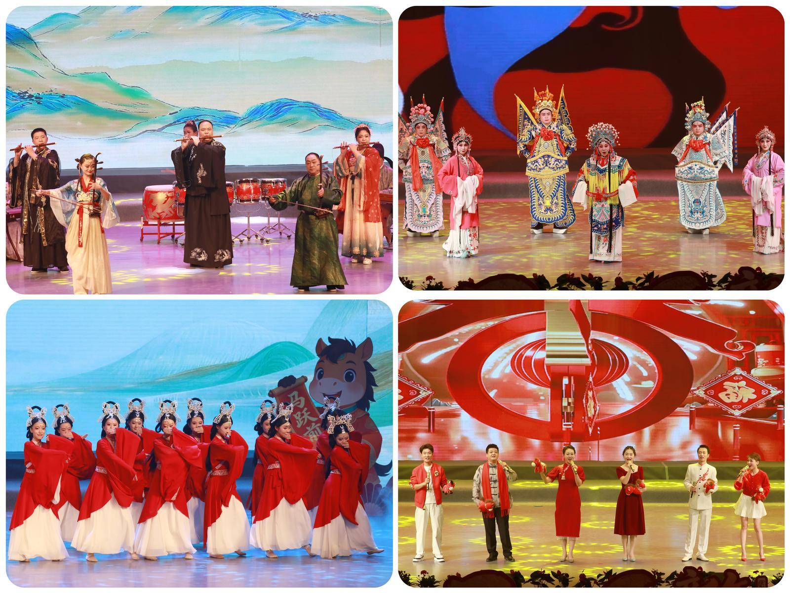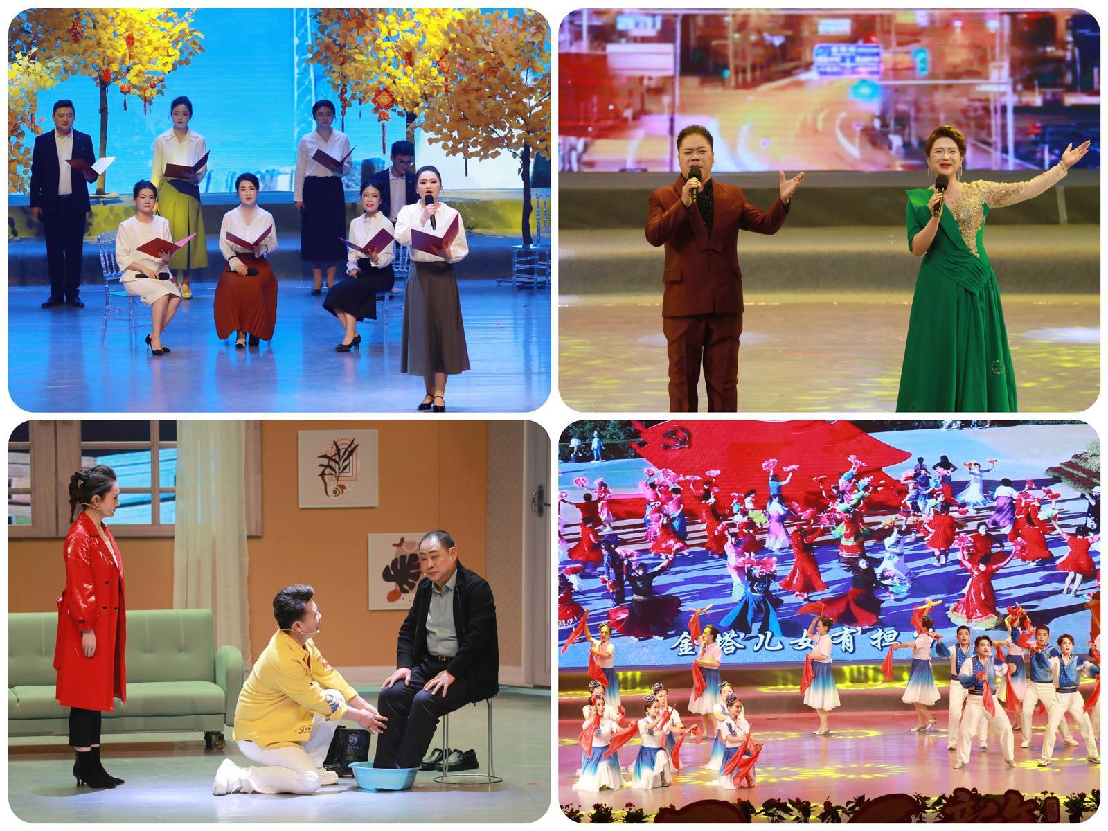 整台晚会分为“春到金塔·万象更新”“春风化雨·家园和美”“文脉流芳·薪火相传”“筑梦启航·共赴未来”四个篇章,汇聚舞蹈、非遗表演、相声、合唱、小品、戏曲等十余种艺术形式。晚会在开场舞《春到金塔》中拉开帷幕,舞者以灵动舒展的舞姿勾勒出金塔大地春回万物、生机勃发的画卷;非遗童子鼓表演《鼓韵金塔》鼓点铿锵,声声鼓鸣敲出了金塔儿女喜迎新春的豪迈情怀;相声《欢乐祥和年》包袱频出、妙语连珠,台下掌声与笑声交织成一片;群舞《马铃摇响幸福年》将消防卫士的飒爽英姿与新春的幸福喜悦完美融合;诗歌朗诵《奋斗答卷》深情诉说了全县干部群众过去一年在乡村振兴、社区服务、文化惠民等领域的奋斗故事;男女合唱《咱老百姓》《幸福中国一起走》唱出了全县人民群众对美好生活的热爱和同心筑梦、携手前行的坚定信念;小品《爱您在心口难开》以孝老爱亲的温暖故事描绘了家庭和睦、家园和美的美好图景;音乐快板《时代潮头谱华章》将全县城市建设、民生保障、平安建设等领域的发展成就娓娓道来;器乐合奏《马跃华章》《骏马筝鸣》,用传统乐器奏响了马年吉祥乐章;戏曲联唱《梨园迎春》汇聚秦腔《王宝钏片段》、豫剧《花木兰》、黄梅戏《女驸马》、京剧《打虎上山》等经典选段,展现了不同剧种的独特魅力;舞蹈《汉韵风华》,以典雅汉服、曼妙舞姿尽显汉风古韵;歌曲联唱《欢歌纳福》以一曲曲经典新春歌曲向现场观众送上新春祝福;舞蹈《民族同心绘锦绣》展现了各民族同胞像石榴籽一样紧紧相拥的深情;舞蹈《逐光正青春》以动感舞姿诠释了新时代青年逐光而行、不负韶华的精神风貌;情景杂技《问天》生动展现了金塔儿女勇于探索、敢为人先的奋斗精神;最后,晚会在结束舞《奋进新征程》中圆满落幕。