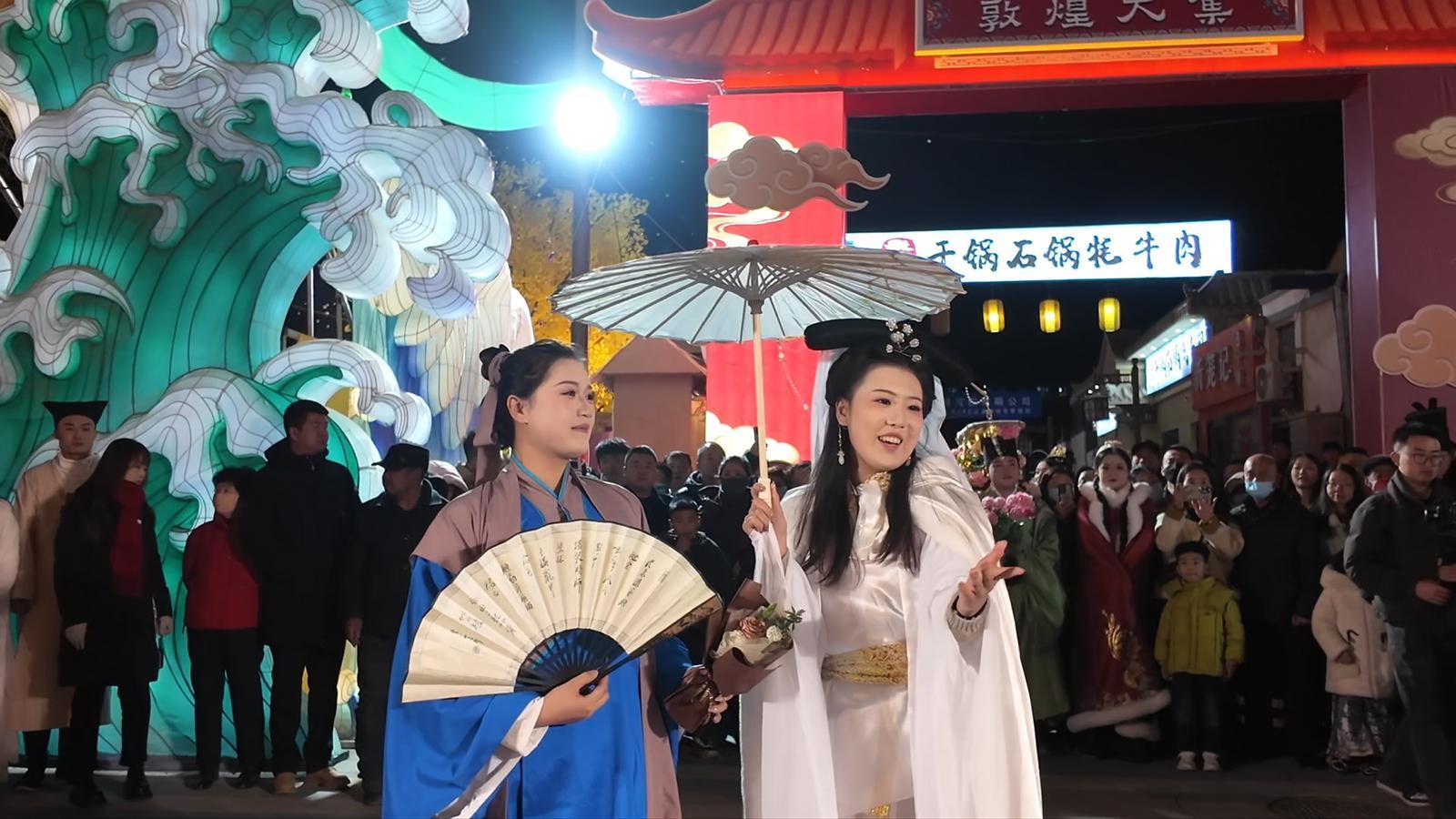 原标题:敦煌夜市上演国风快闪 经典角色点燃丝路冬夜