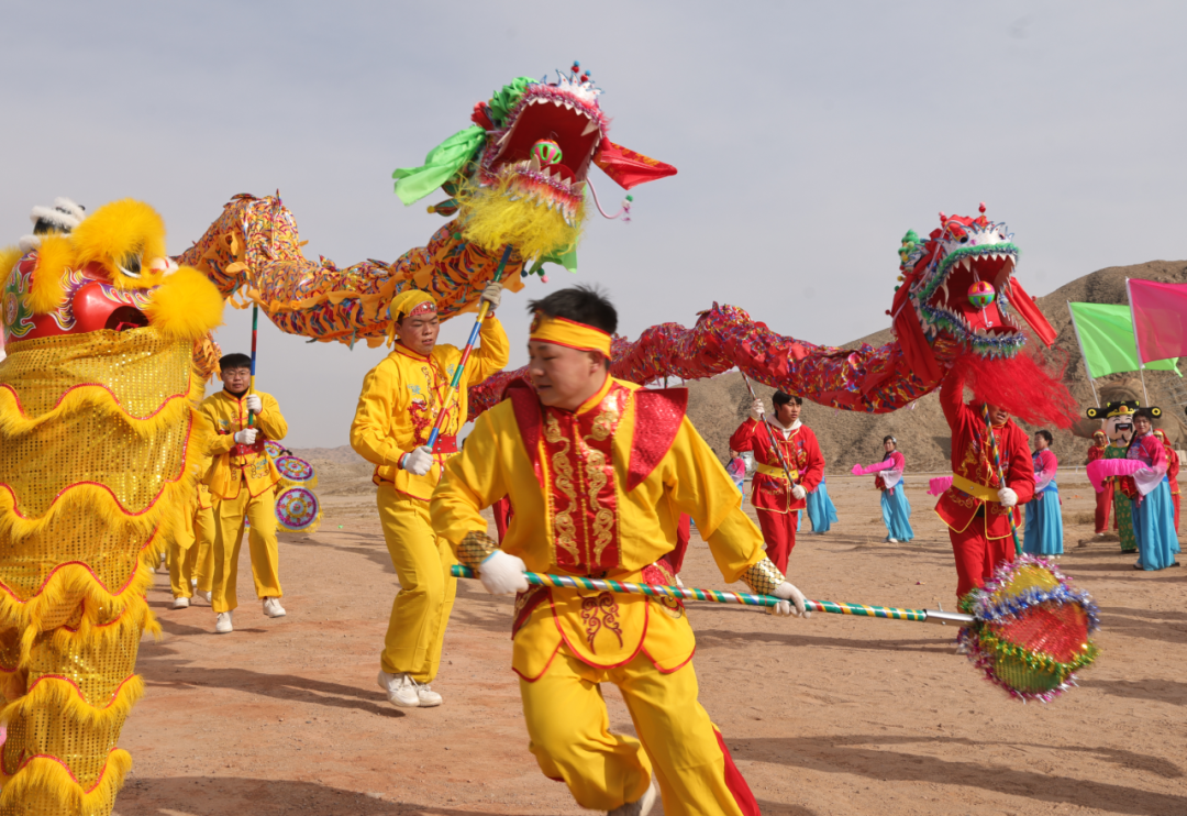 紧接着,社火表演登场,瞬间点燃现场氛围。伴随着欢快激昂的鼓点,金黄与朱红相间的龙狮昂首登场,在极具未来感的火星地貌中腾跃翻滚、摇头摆尾,时而昂首嘶吼、时而俯身游走,红绸飞舞间,将传统年俗的喜庆与灵动展现得淋漓尽致,让“火星”充满了浓浓的年味儿与烟火气。