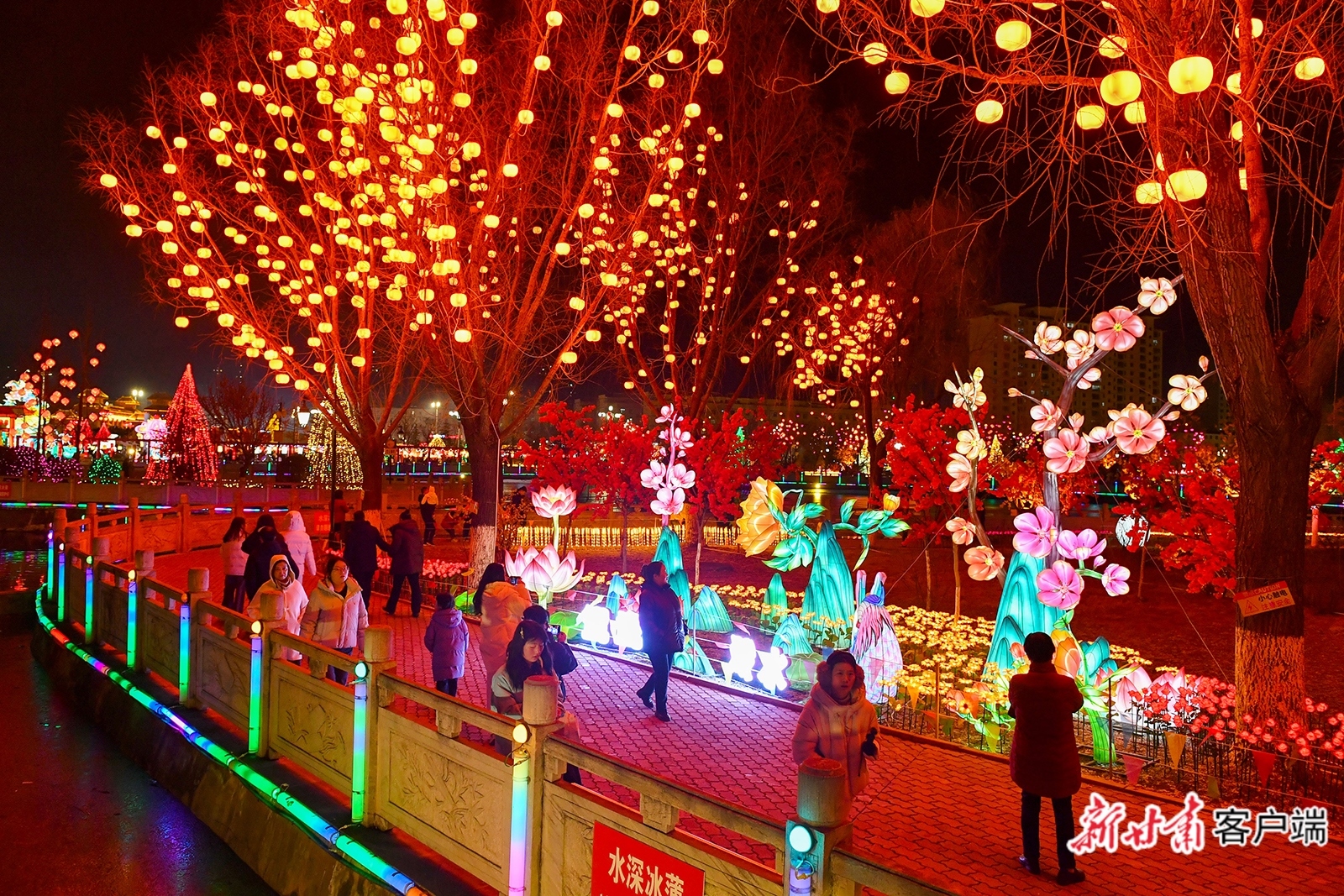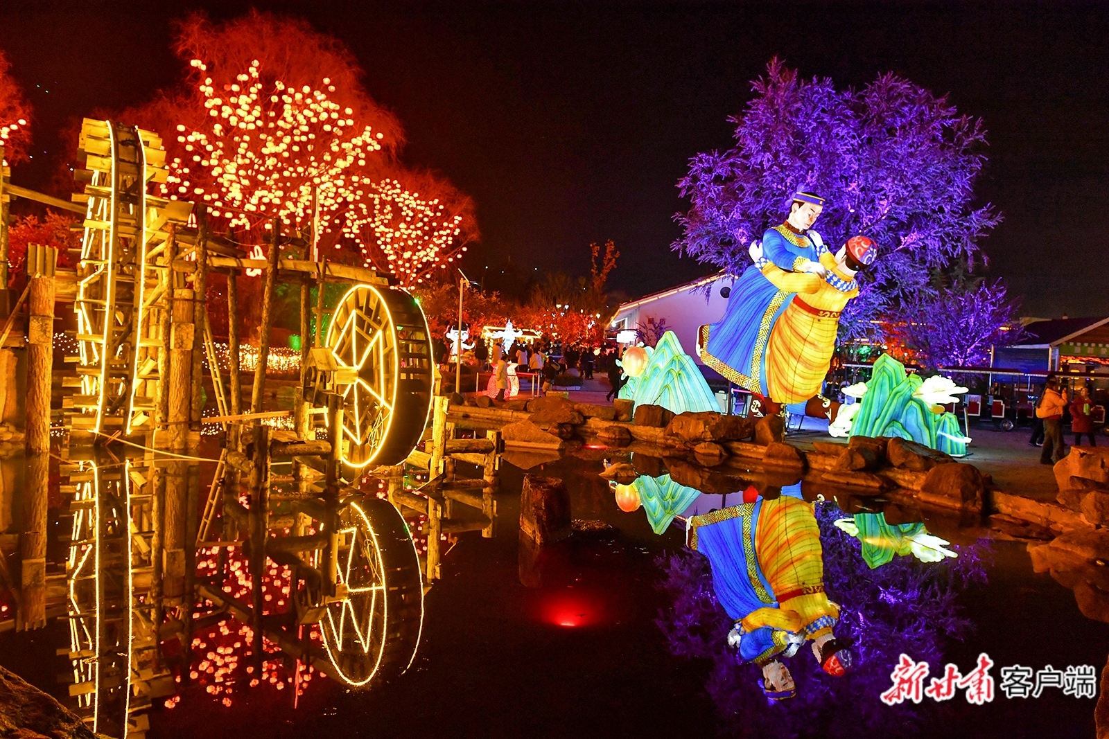 2月19日,在清水县轩辕湖公园一组组独具匠心的民俗花灯,吸引众多市民和游客参观。