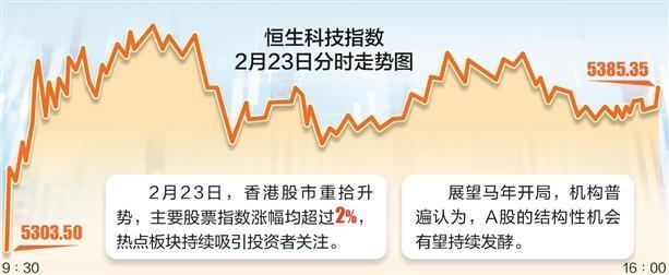 2月23日,香港股市重拾升势,主要股票指数涨幅均超过2%。热点板块持续吸引投资者关注。分析认为,随着科技行业持续创新,中国资产仍将继续受到投资者关注。