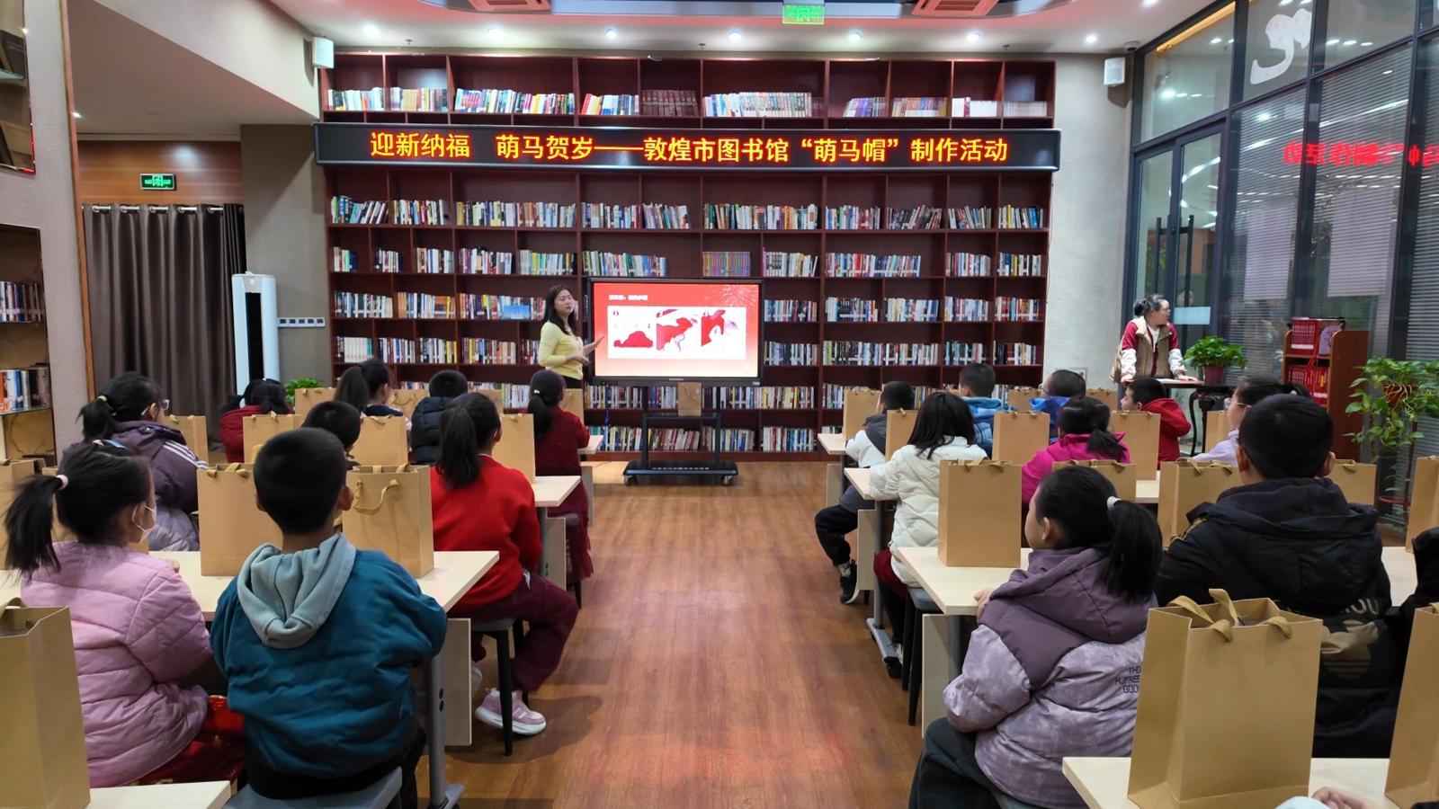 2月22日下午,敦煌市图书馆内洋溢着欢乐与温馨的氛围,一场别开生面的“萌马帽”手工制作活动热闹举行。35名儿童欢聚一堂,亲手制作寓意吉祥的“萌马帽”,在一针一线中感受传统年俗的独特魅力,为马年新春增添了一份童趣。