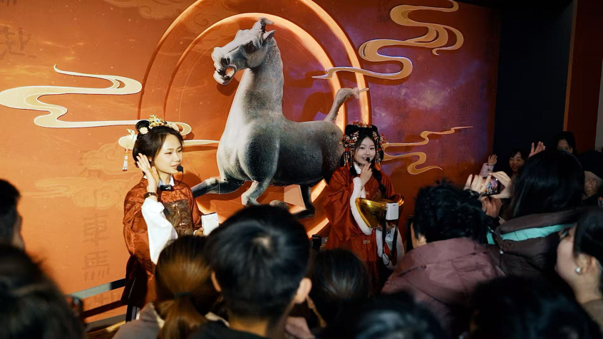金城关、兰州老街、黄河楼、水墨丹霞、兰州野生动物园、金城公园、兰山、青城古镇等A级景区,以及五泉山公园、省博物馆、“风起大汉”沉浸式演艺街区等人气火爆,成为市民游客的热门打卡地。金城关景区接待游客39.25万人次,黄河大集、“非遗贺新春 文化进万家”等群艺活动年味浓郁,带动中山桥黄河游船累计运行超800航次、运送游客超3.5万人次。兰州老街“非遗过大年”系列文旅活动分区域、分时段有序开展NPC互动、民俗展演、乐队演出,兼顾游客安全与文旅体验,假期累计接待游客136.6万人次,高峰期连续4日单日突破20万人次。甘肃省博物馆连续5日满员接待,日均接待1.2万人次,依托馆藏马文化文物推出的多款马年主题文创产品更是掀起消费热潮,文创销售额突破100万元,同比增长10%以上。受西固灯会带动,金城公园春节假期接待游客73.4万人次。兰州野生动物园、水墨丹霞、黄河楼等景区累计推出灯展、非遗展演、互动体验、直播秒杀促消费等文旅活动128场次,实现门票及二次消费收入548.7万元,二次消费占比持续提升,消费结构不断优化。此外,兰州音乐厅、黄河剧院、甘话60剧场、东风剧院等剧场推出儿童剧、话剧以及经典舞剧《大梦敦煌》,繁荣节日文化市场。