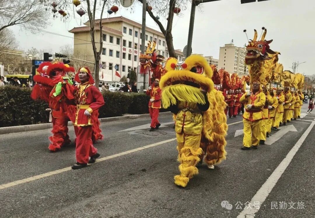 金鼓齐鸣辞旧岁,秧歌欢舞闹新春。为传承非遗民俗、营造喜庆祥和的节日氛围,民勤县秧歌社火大拜年精彩继续,热闹场景燃动全城,年味十足、喜气满堂!
