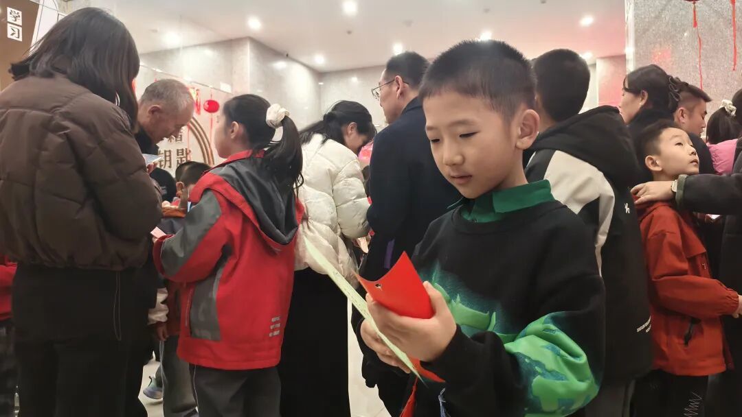 最受期待的“书香猜灯谜”环节更是精彩纷呈。为营造浓郁的节日氛围,古浪县图书馆在大厅精心挂起28盏红彤彤的专属花灯,这一排排色泽喜庆的灯笼交相辉映,将大厅装点得格外温馨。柔和的灯光下,70余条涵盖民俗、文学、常识等领域的谜题微微摇曳,妙趣横生。孩子们时而驻足凝神沉思,时而与家长热烈探讨。每当谜底揭晓,猜中者便欢呼雀跃,迫不及待地兑领礼品。大家在动脑解谜中沉浸式感受传统智慧,现场书香四溢,其乐融融。