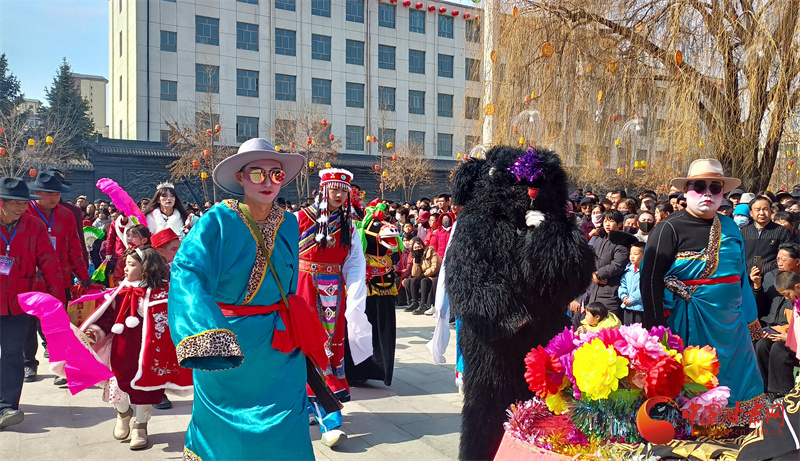 秧歌俗称“社火”,是当地极具代表性的民间歌舞形式。今年春节,和政县共有11伙秧歌队闹新春,正月十三当天6伙秧歌队在县城各点位集中展演,为全县人民献上丰盛的文化盛宴。