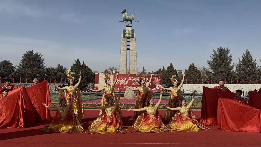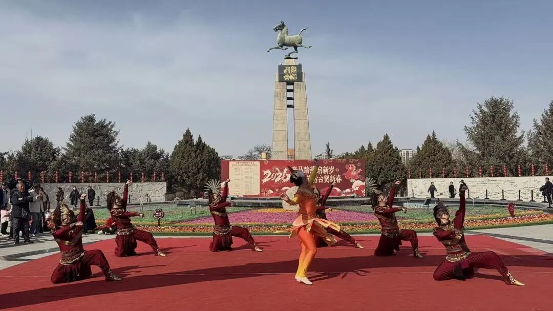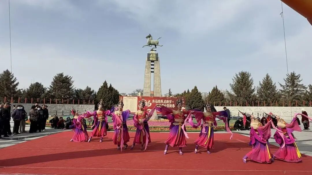 活动启幕,国家级非遗凉州攻鼓子气势登场。鼓手们身着劲装,身姿矫健,鼓点铿锵激越,如金戈相击、风雷激荡,雄浑之声穿越时空,与汉墓古意相映生辉,尽显西北豪情,引得现场掌声雷动。
