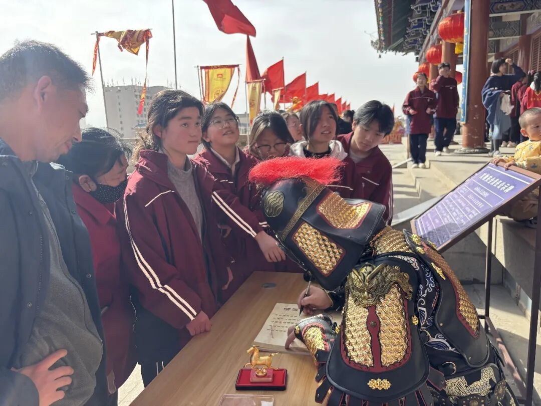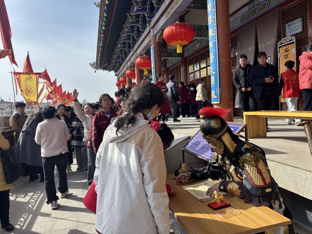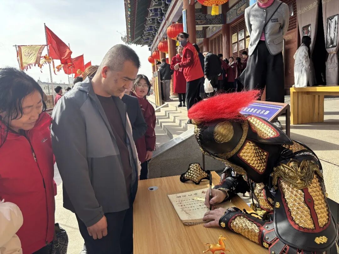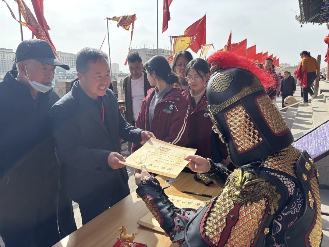 活动现场,“凉州大将军”铠甲鲜明、气势如虹,沿城楼巡礼展仪,尽显古凉州雄关漫道、丝路要塞的豪迈气象。与此同时,将军现场为市民游客亲笔书写、签发“通关文牒”,加盖专属文化印鉴,一纸文牒承载千年丝路记忆,既增添了沉浸式互动乐趣,又送上元宵佳节的吉祥祝福,引得市民游客争相参与、打卡留念,城楼之上欢声笑语不断,节日氛围浓郁热烈。