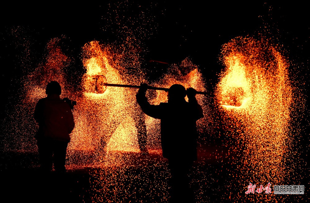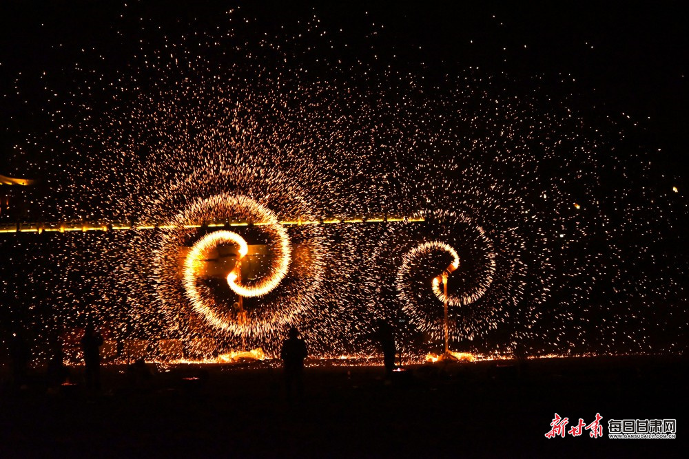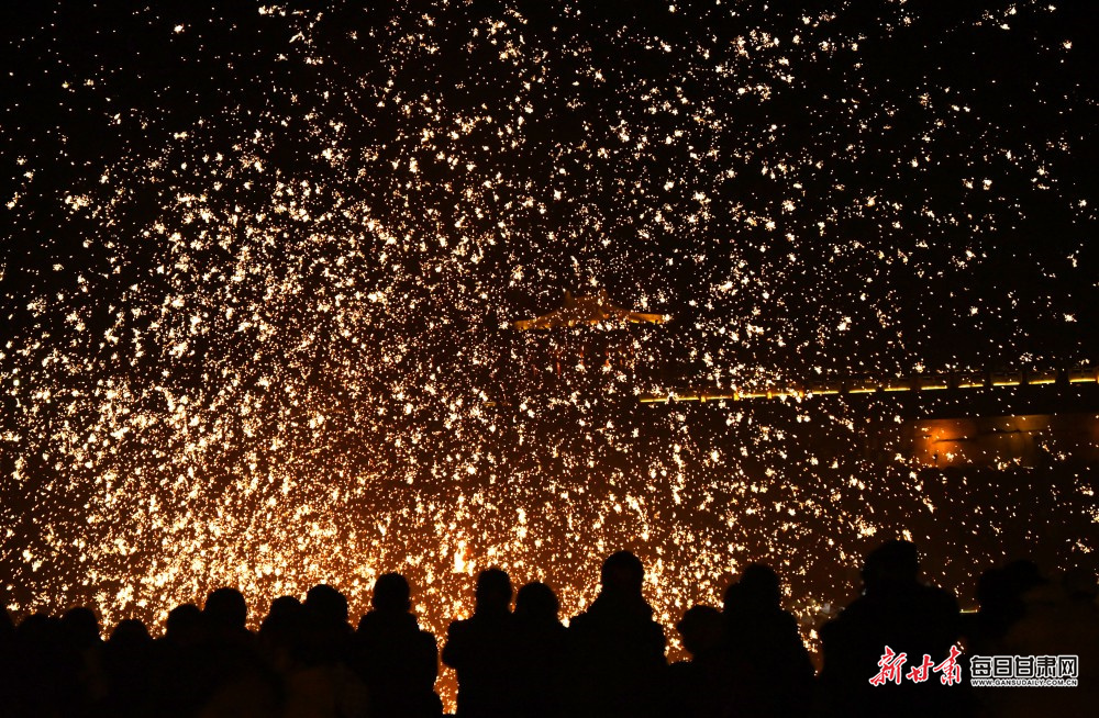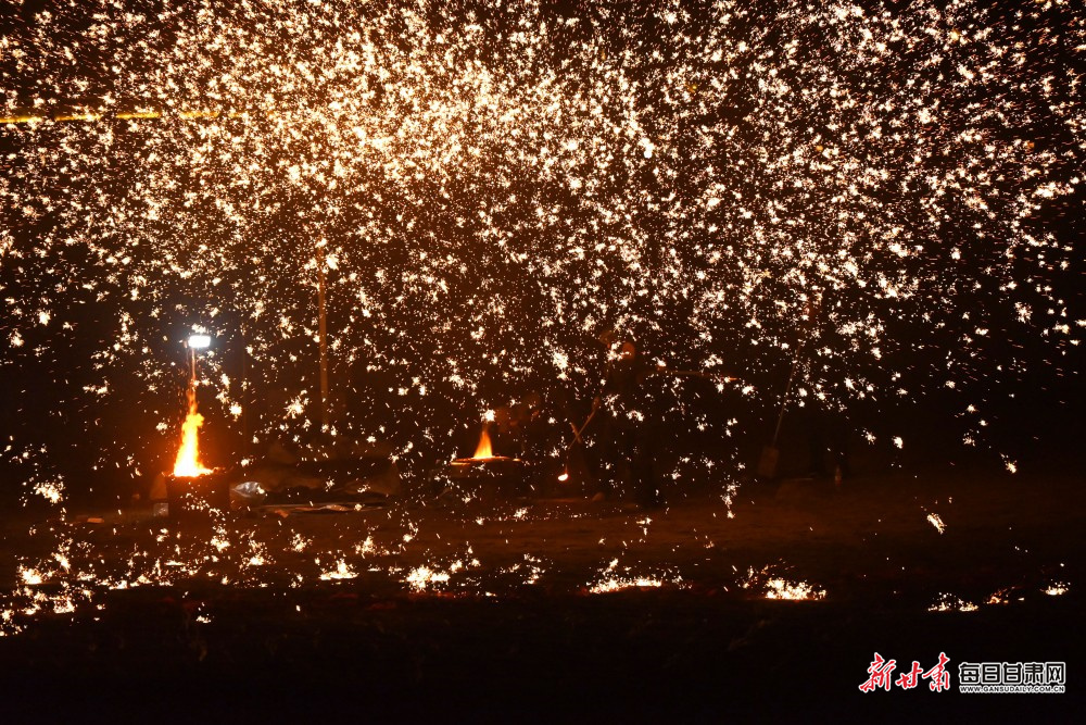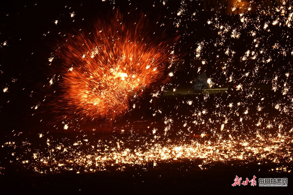 原标题:【陇原年味】火树银花映丝路 敦煌非遗打铁花展演迎元宵