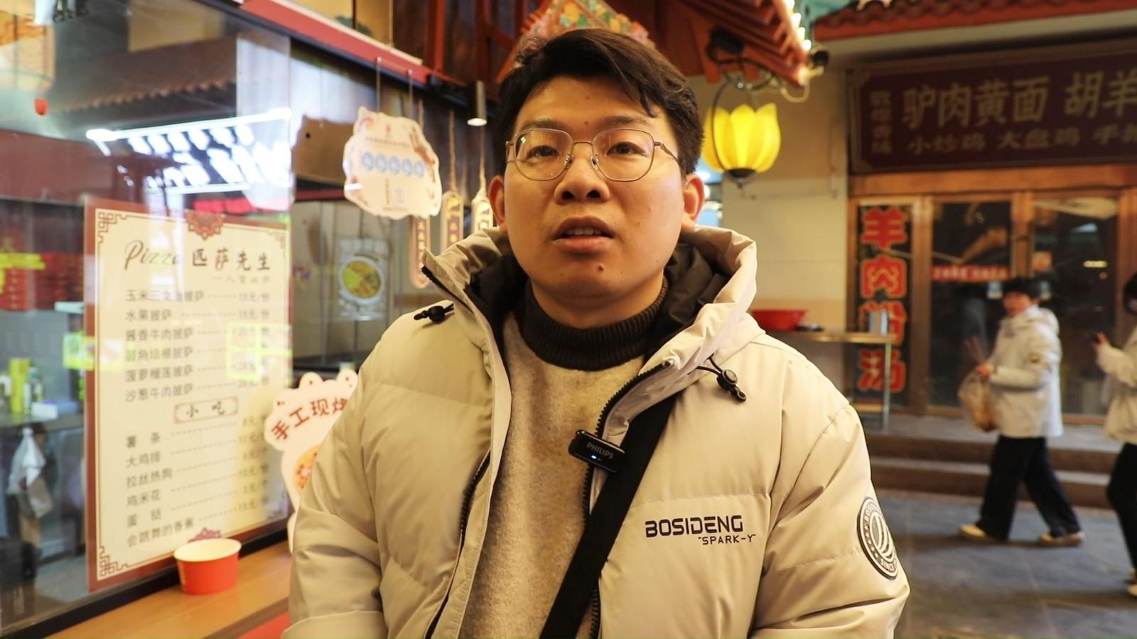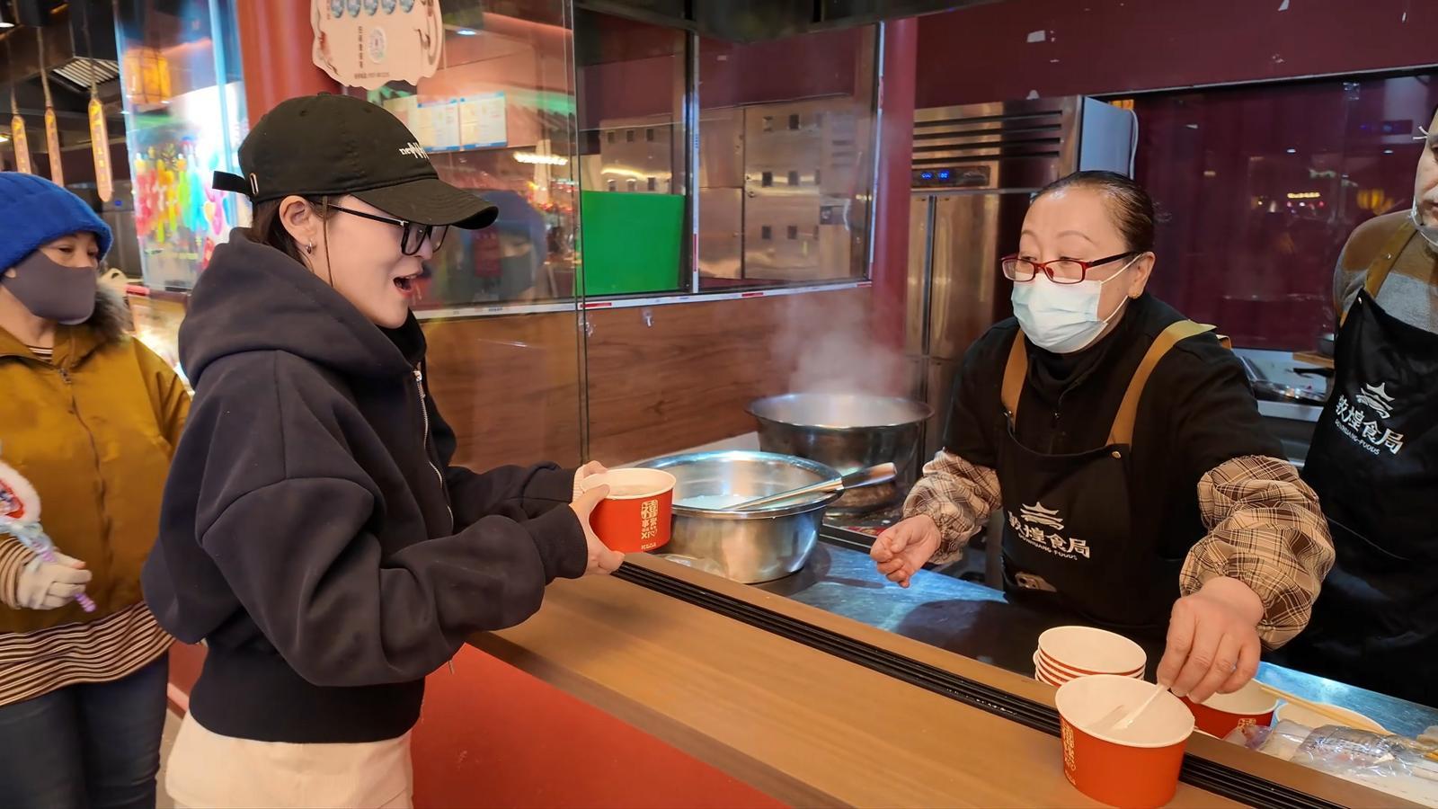 上海游客路璟豪说:“我是从上海来的,昨天正好去雅丹游玩,景区工作人员给了我们两张吃汤圆的券。今天来到敦煌夜市,感觉人特别多,很有节日氛围,能免费吃到热乎的汤圆,我感觉很高兴。”