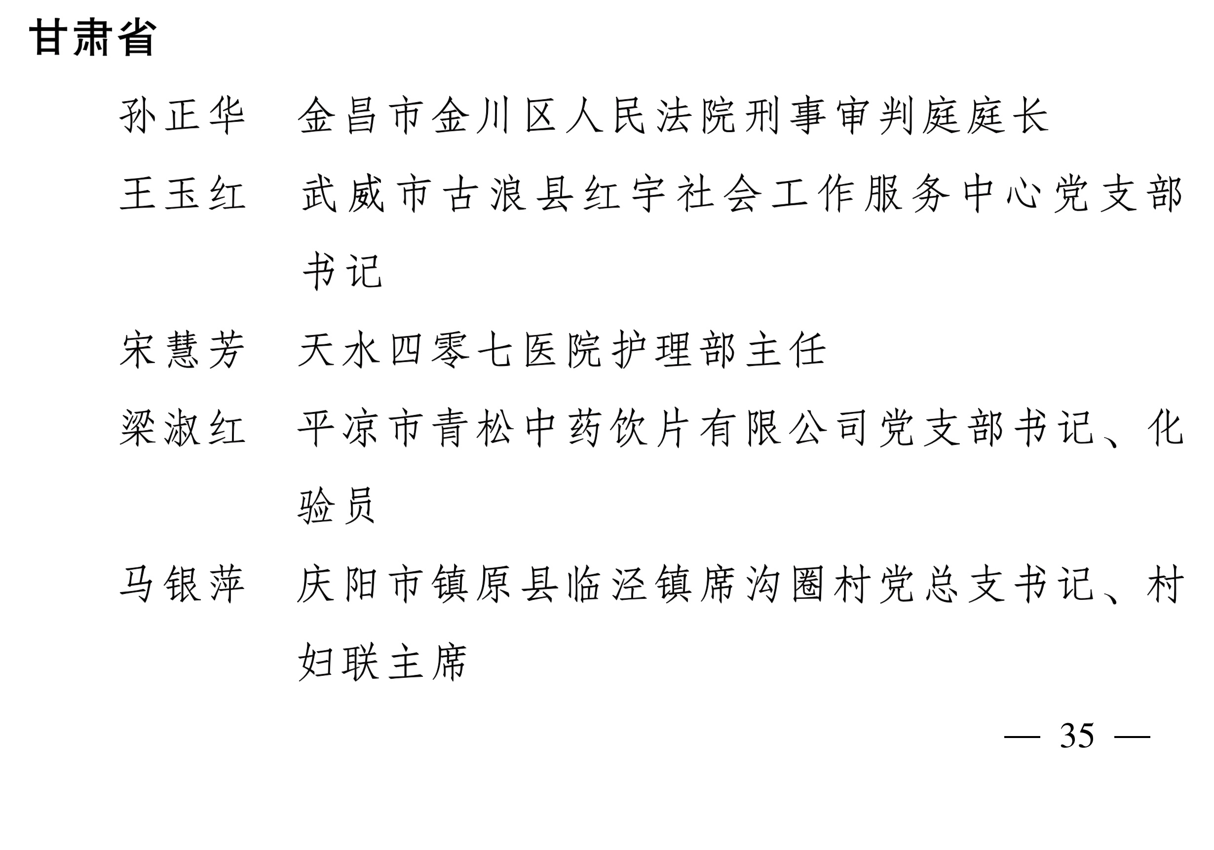 3月2日,记者从甘肃省妇联获悉,全国妇联日前在京举行纪念“三八”国际妇女节暨表彰大会。甘肃省13人获评“全国三八红旗手”,10个单位获评“全国三八红旗集体”,13个单位获评“全国巾帼文明岗”。其中,孙正华等13人荣获“全国三八红旗手”称号;张掖市妇联等10个单位荣获“全国三八红旗集体”称号;甘肃省女法官协会等13个单位荣获“全国巾帼文明岗”称号。