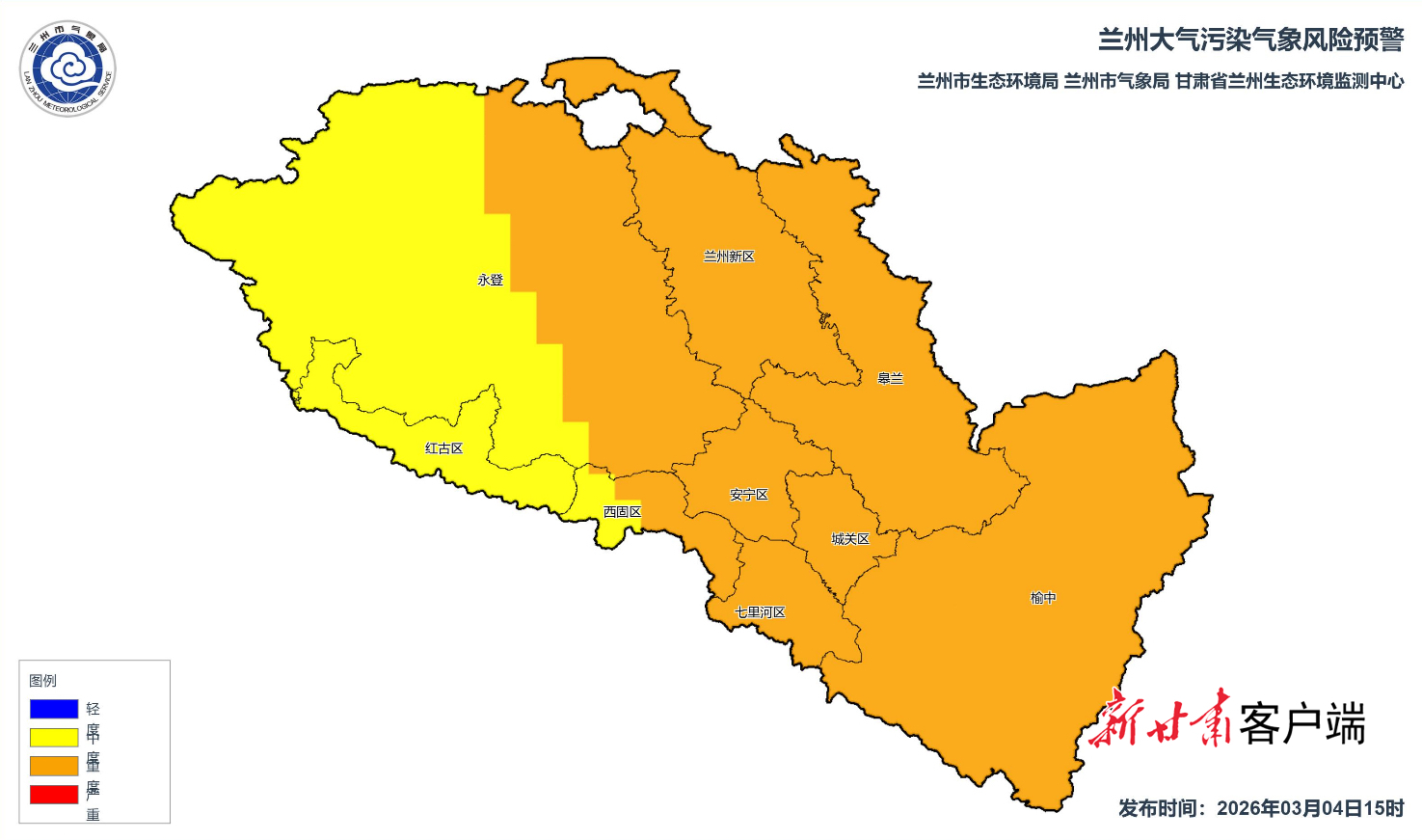原标题:甘肃省发布健康气象风险提示 兰州市发布大气污染气象风险橙色预警
