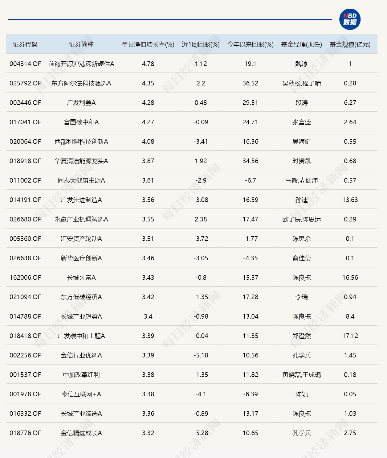 原标题:市场反弹但冲高回落,5只基金单日涨逾4%