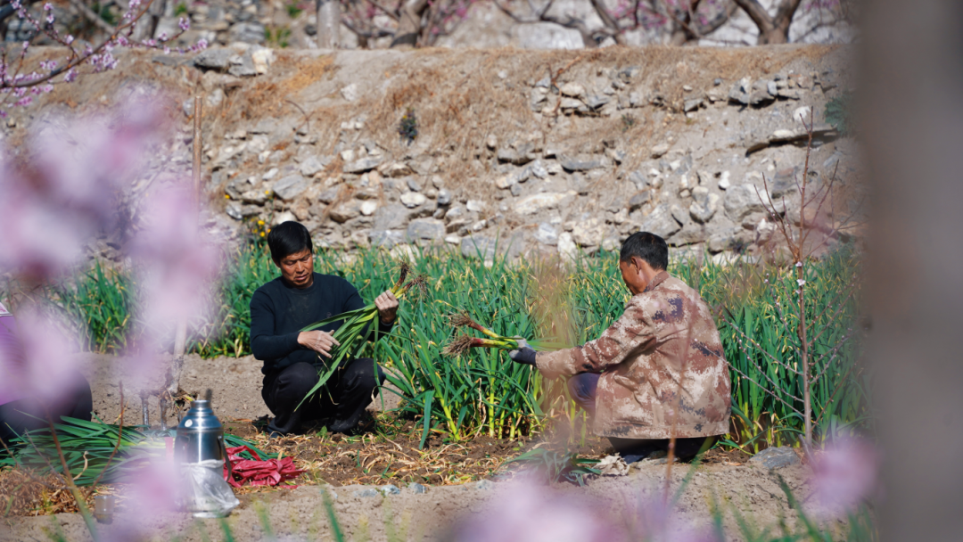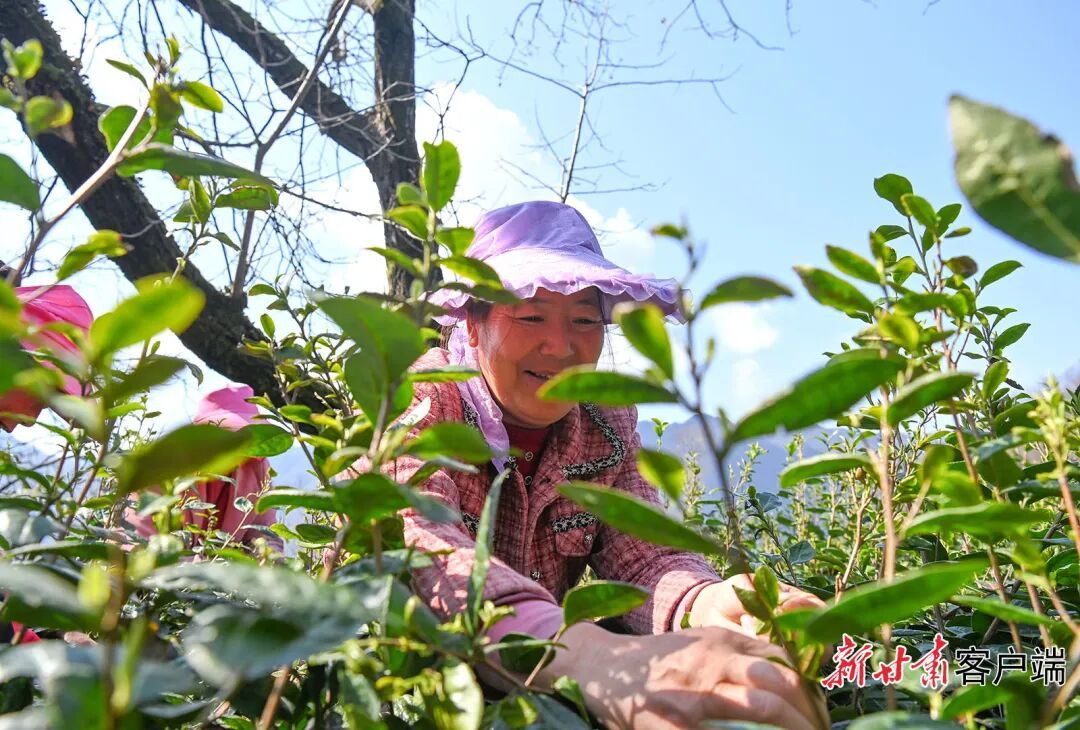 指尖翻飞间,嫩绿的新芽落入竹篓
