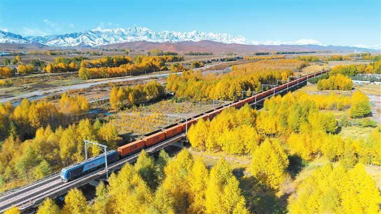 中欧班列行驶在兰新铁路上 新甘肃·甘肃日报通讯员 宋佳龙