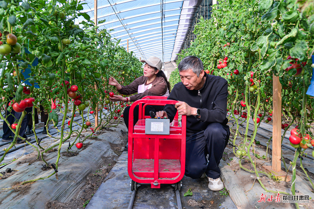 针对本地温室大棚作业空间狭小、人工采摘与管理效率低等难题,敦煌市农业技术推广中心在转渠口镇首次引进智能轨道运输车,同步推广东西行宜机化栽培模式与有机质穴栽新技术;配套智能巡航喷雾机,运用轨道自动行走、射流雾化技术,实现肥药精准高效喷洒。同时引入熊蜂授粉技术,全面提升果蔬品质与产量。