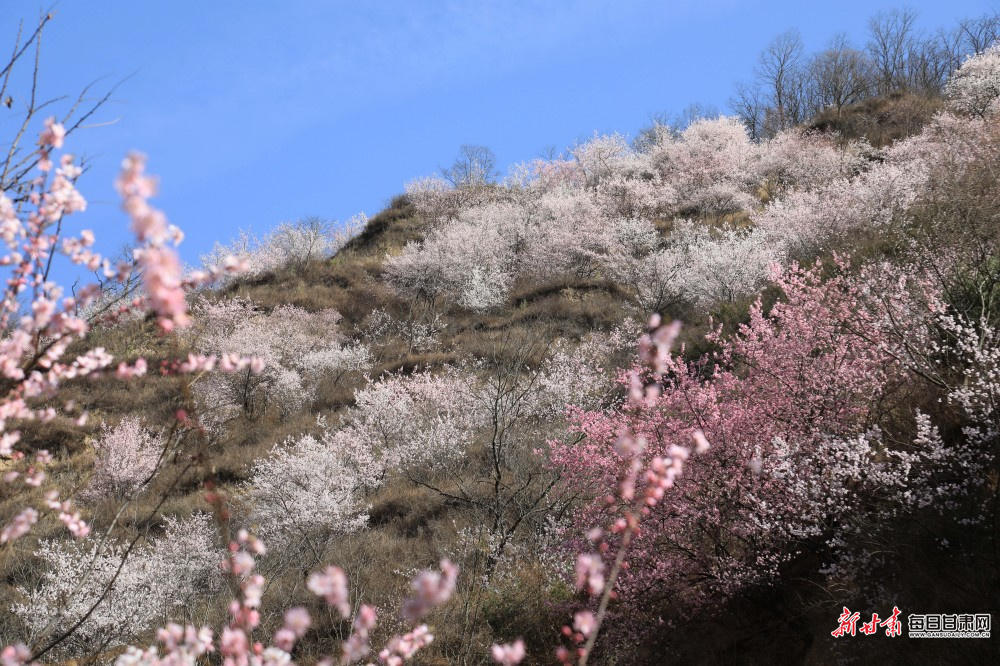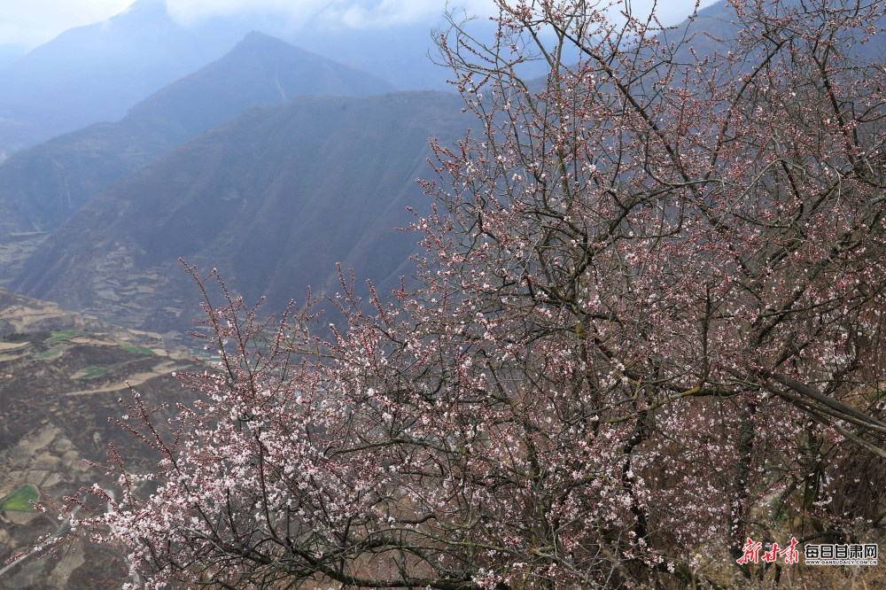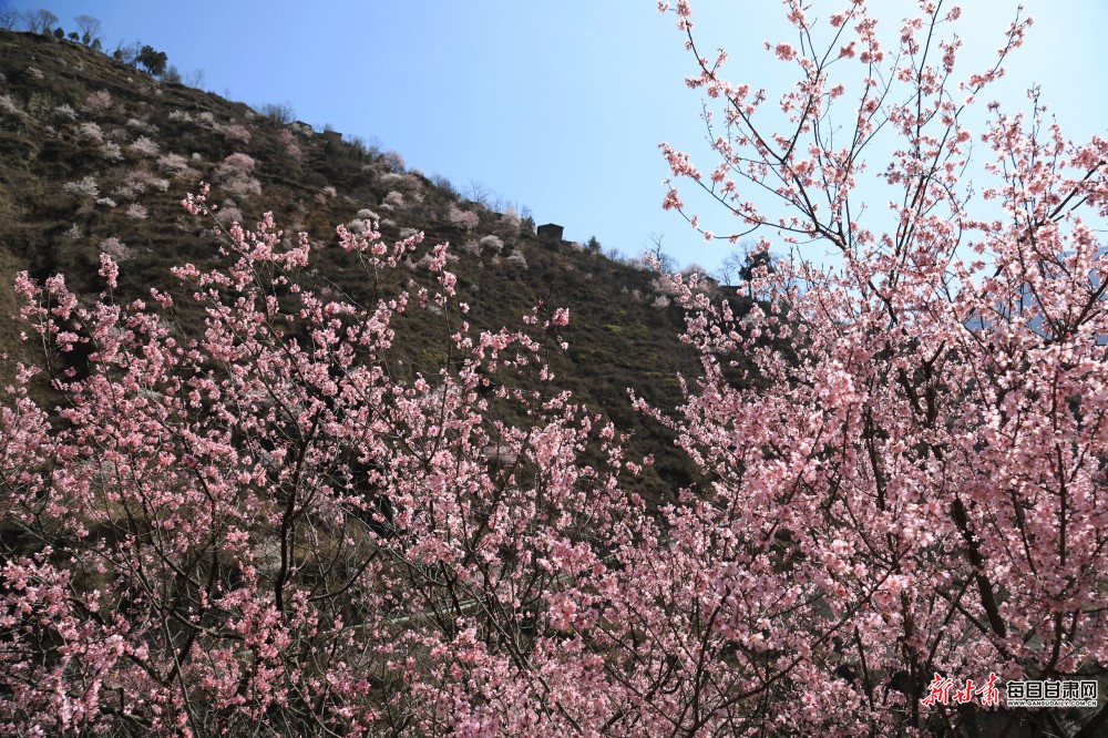 初春时节,陇南市文县铁楼藏族乡漫山遍野的野桃花、杏花竞相绽放,漫山花海与白马河山寨、传统村落、袅袅炊烟、田野绿意相互映衬,勾勒出一幅原生态的美丽乡村画卷,将这片有着浓郁民族文化的土地装点得如诗如画,成为春日里一道亮丽风景线,吸引众多游客前来踏青赏花、亲近自然,尽享春日美好时光。
