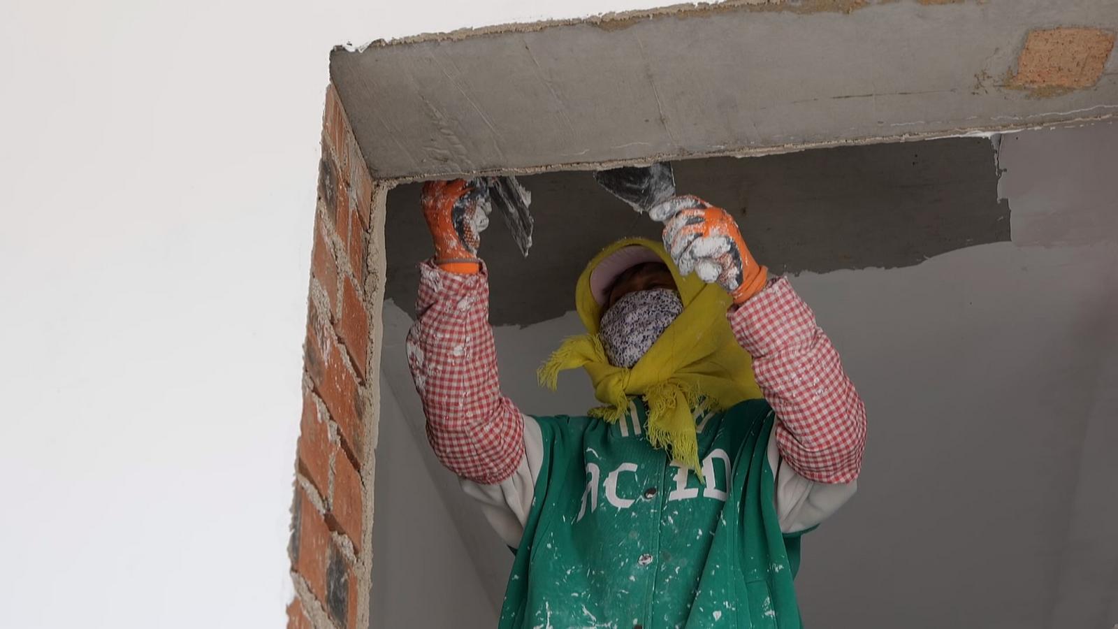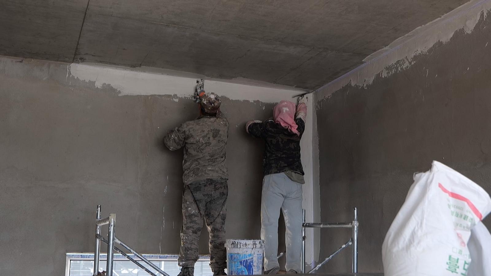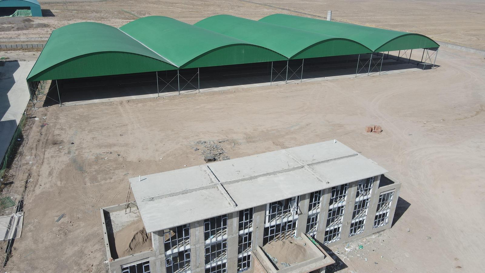 记者在施工现场看到4座共12000平方米的储草棚已经建成,为后续牧草筛选机、打包机、柔丝机、切草机等设施设备进场做好了准备;管理用房主体框架已然成型,工人们正分组协作,开展室内墙体粉刷作业,现场秩序井然、干劲十足。