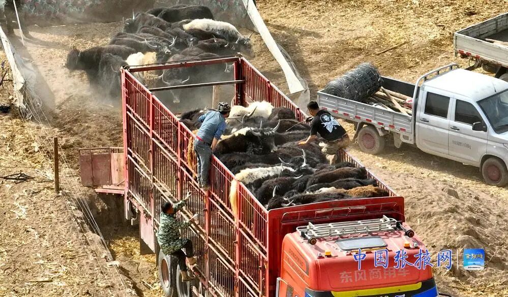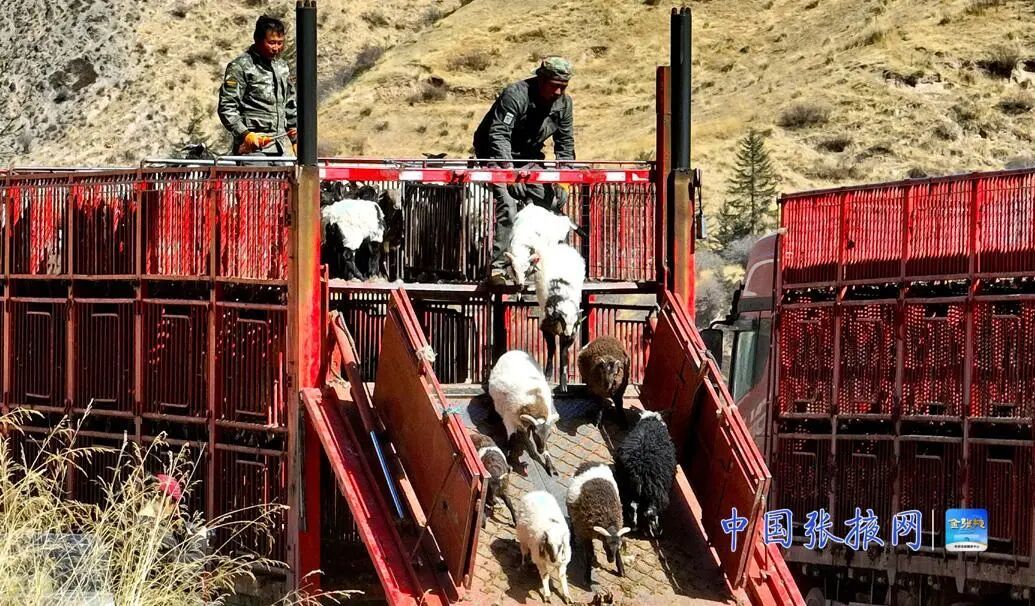 在甘州区党寨镇上寨村借牧的肃南县马蹄乡八一村藏族牧民尕满草和黄草沟村牧民樊得勤,也同其他村民一样,早早将400多只羊和40多头牦牛集中装车,启程返回祁连山牧场。