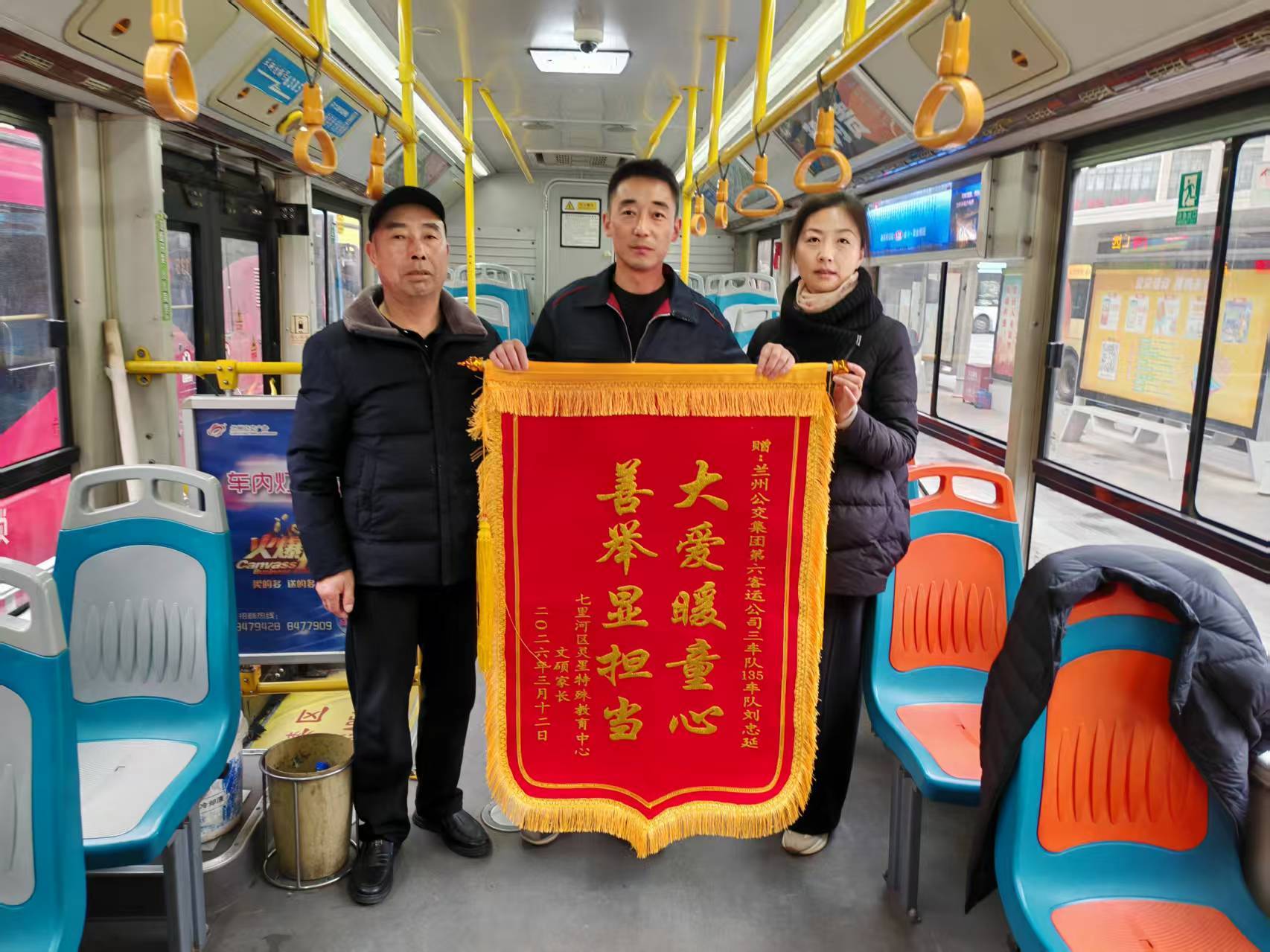 3月13日上午9时许,在兰州市西关十字枢纽站,孩子的姥爷贺先生将一面印有“大爱暖童心 善举显担当”的锦旗送到刘中延手中,感谢他在寒夜帮助孩子平安回家。负责孩子康复训练的七里河区灵星特教中心老师高女士一同前来致谢。她表示,作为特教机构工作人员,深知孤独症儿童走失的风险,“社会多一分理解与关爱,这些特殊孩子就多一分安全。”