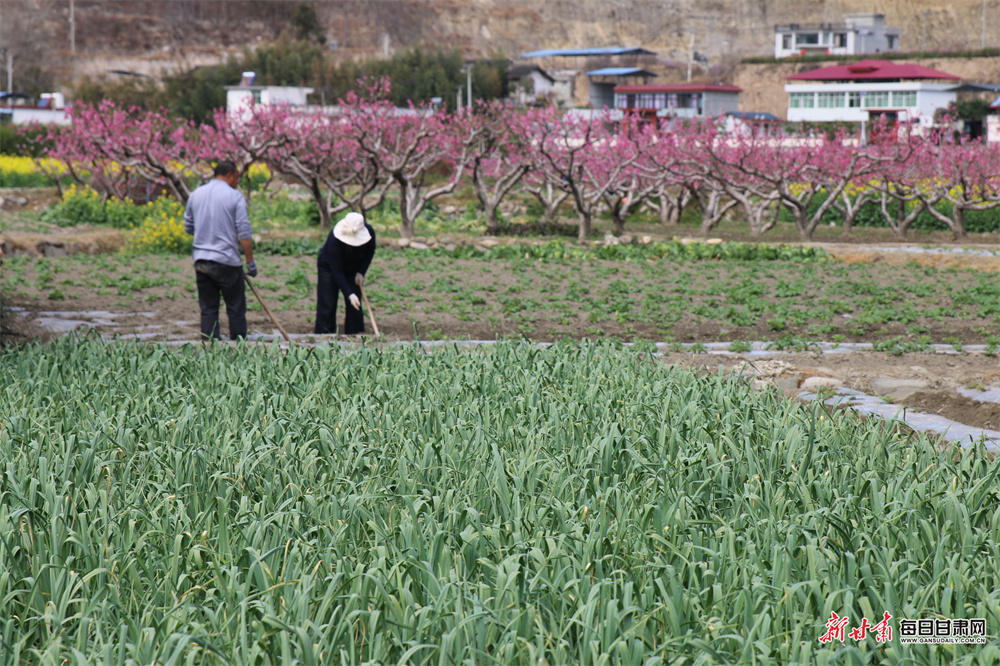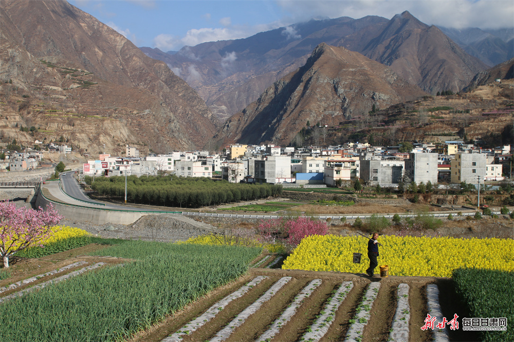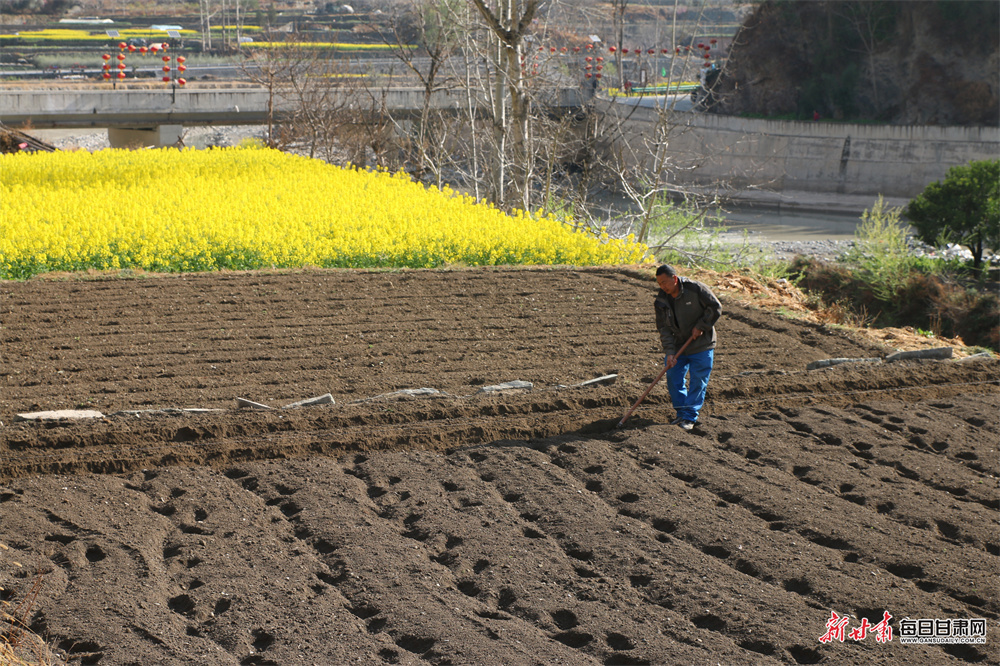 随着气温回升,陇南文县白水江沿岸油菜花竞相绽放,田野间满目金黄、生机盎然。连日来,文县尚德镇群众抢抓农时,开展春耕备耕、育苗管护等田间作业,人勤春早的忙碌景象,勾勒出一幅生机勃勃的春日农事画卷。