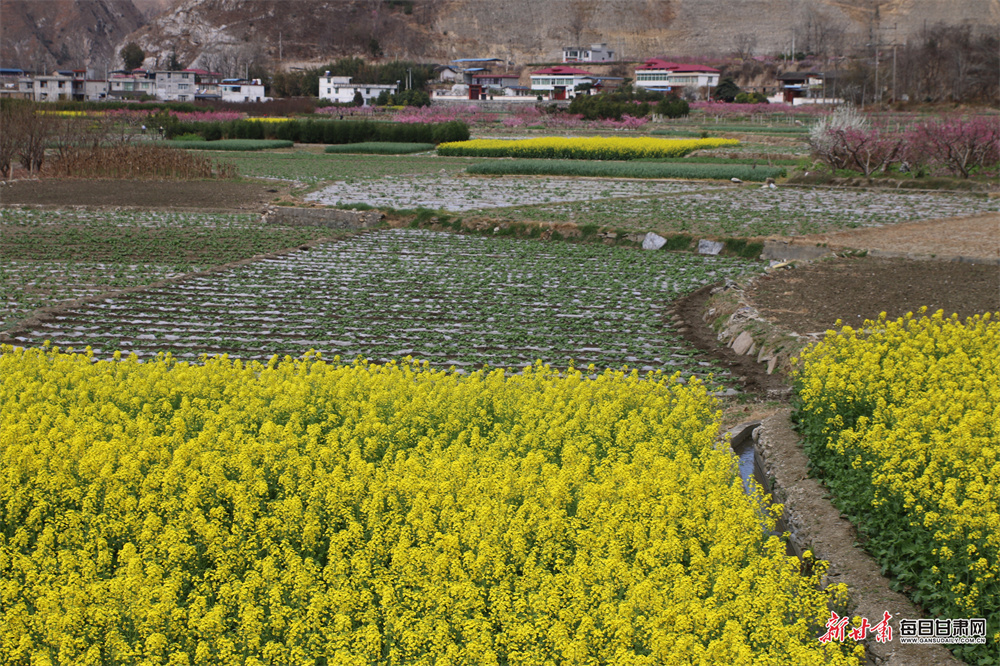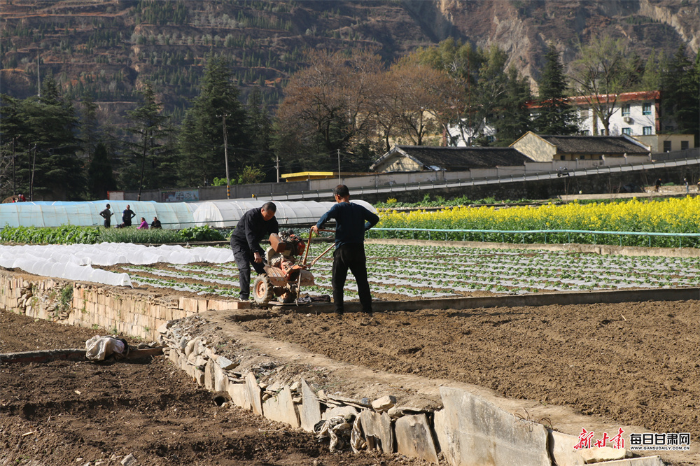 原标题:油菜花田铺金毯 文县春日农事忙