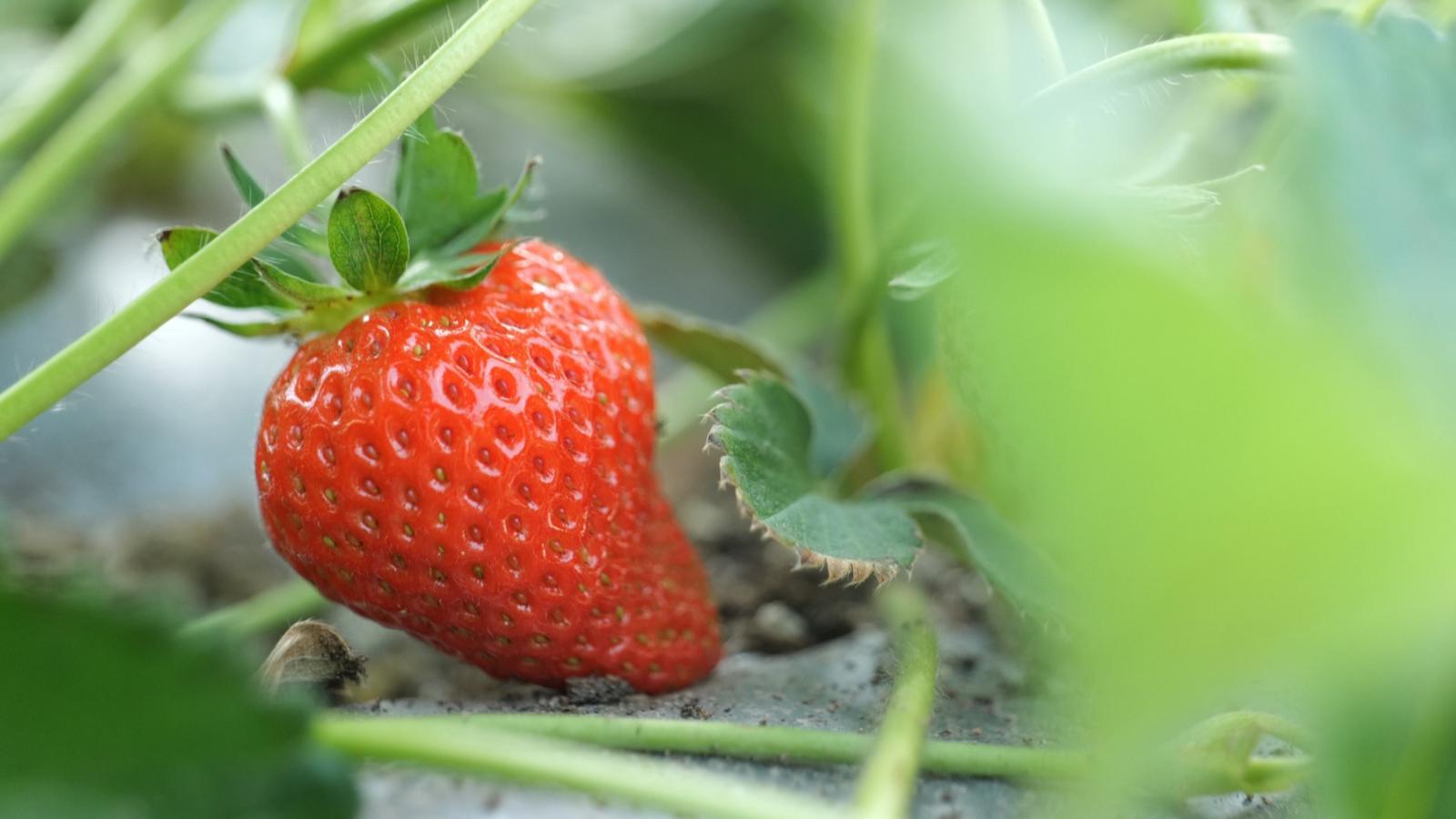 离开建设工地,不远处的大棚里却是绿意葱葱。去年建成的67座大棚内,育苗工作已紧锣密鼓地开展了四五天。一盘盘西兰花、芹菜、笋子码放整齐,洋葱苗破土吐绿,草莓像红宝石般点缀其间,鲜嫩诱人……