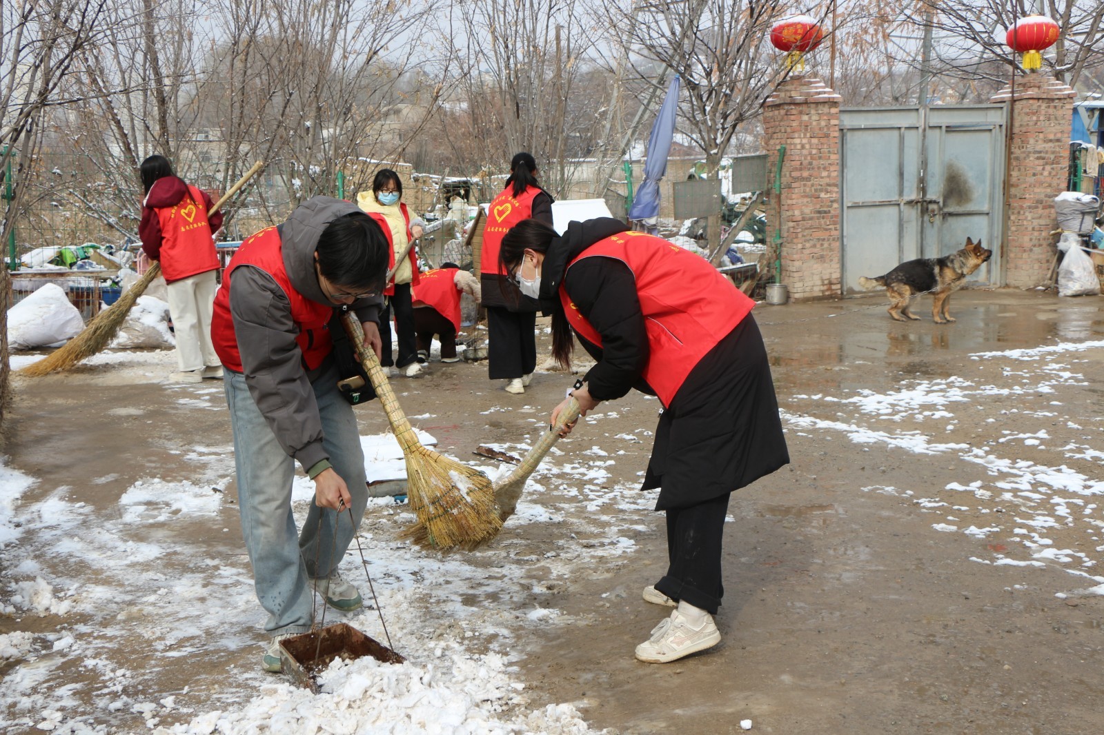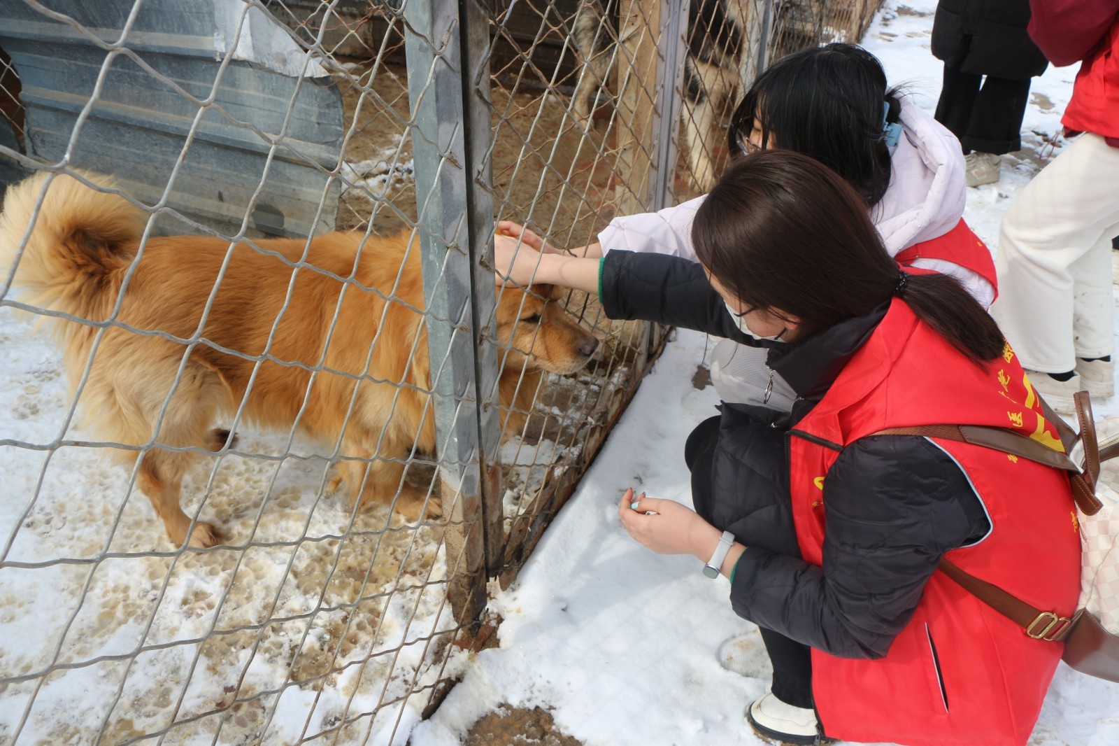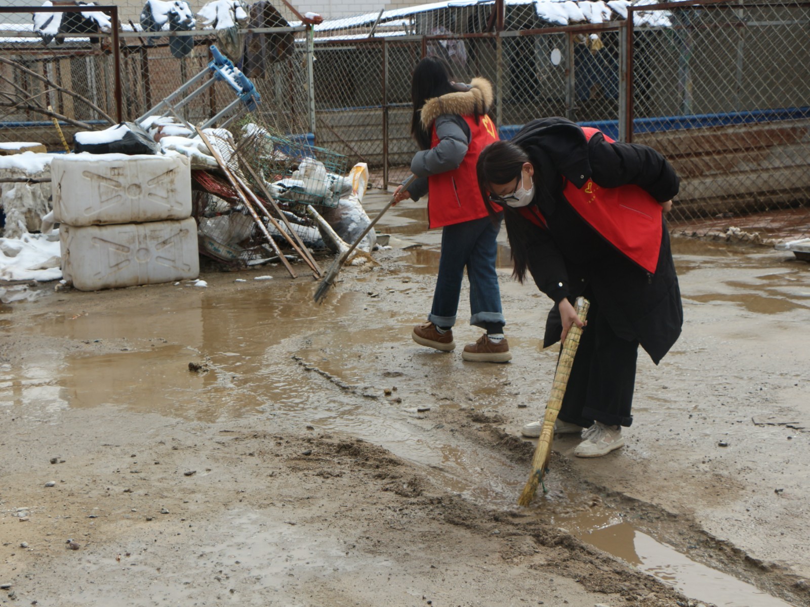 当日上午9时许,志愿者一到救助站就忙活起来。最近气温较低,院里的积雪还没化完,大家分工合作,先把道路和动物活动区的积雪清理干净,保证犬舍周边干燥安全。接着打扫卫生、全面消毒,帮助后勤人员清洗动物的餐具、准备新鲜食物,把小动物的健康防护做到位。忙完这些,大家又温柔地和流浪犬猫互动,轻轻抚摸,一点点消除小动物们的紧张和害怕,让这些曾经流浪的小生命感受到温暖。