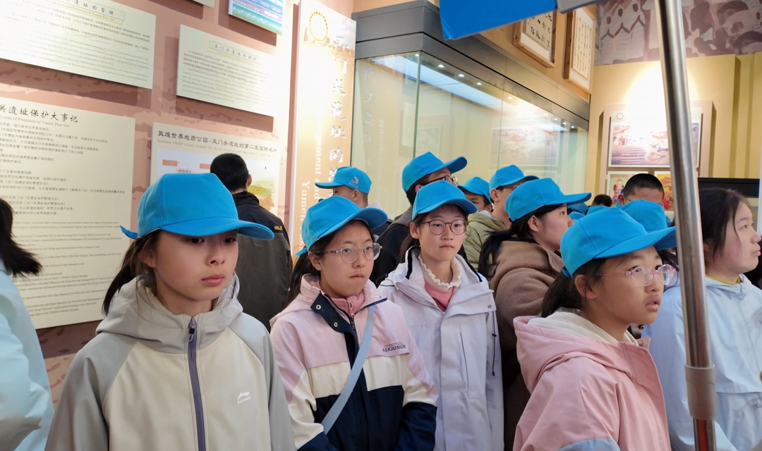 清晨,同学们首先来到玉门关遗址展厅。展厅内,丰富的图文资料和珍贵的出土文物,将丝绸之路的繁华盛景徐徐展开。讲解员生动地讲述着玉门关的历史沿革:“这里曾是汉代扼守西域的咽喉要道,无数商旅、使者、戍卒从这里走过……”同学们驻足观看,认真记录,从一件件陶器、一枚枚汉简中,感受着丝路文明的厚重与辉煌。