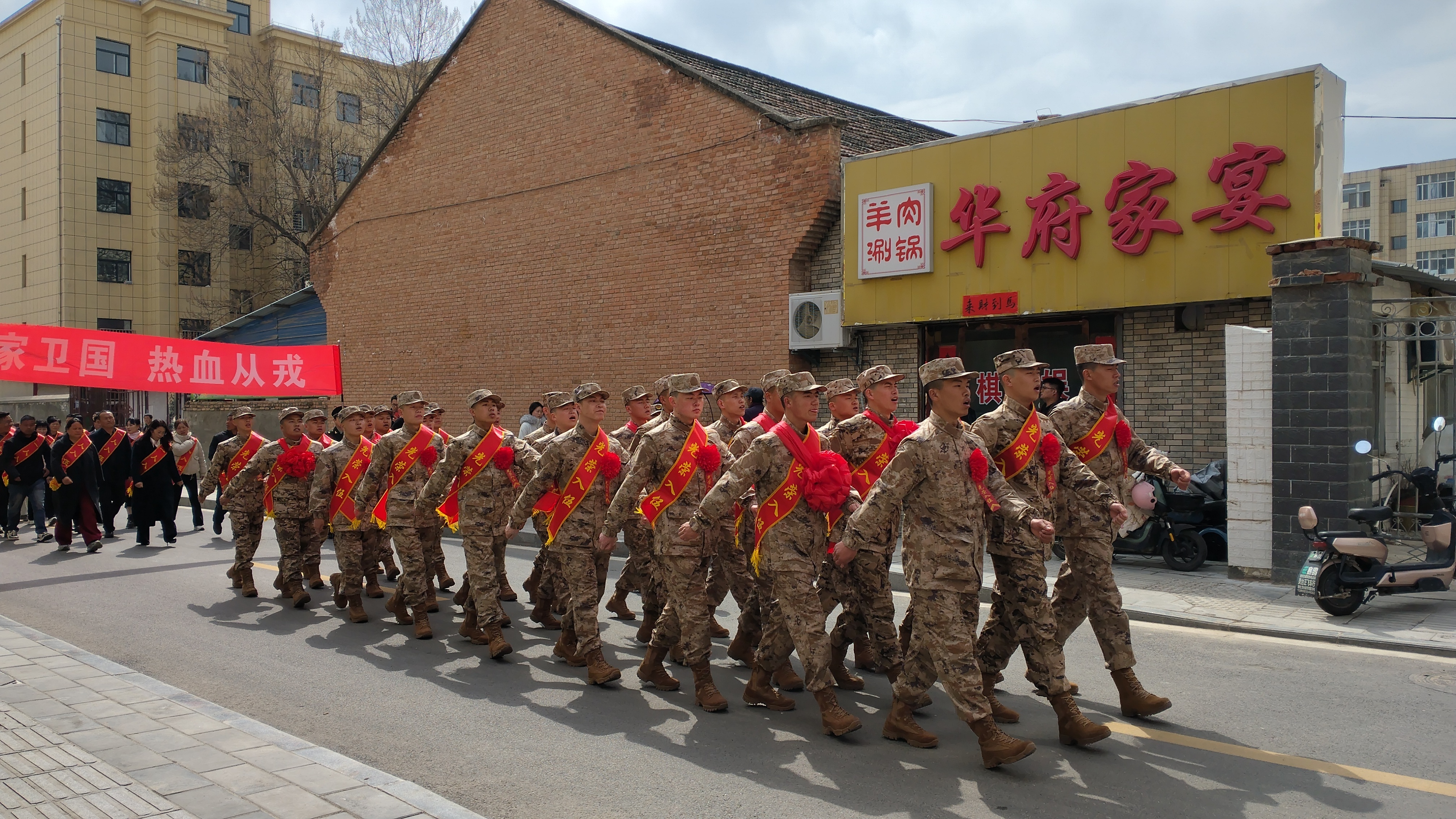 春风送暖,情满征程。鲜艳的红花映衬着青年们朝气蓬勃的脸庞,熠熠生辉的绶带承载着家乡人民的无限期许与深切嘱托。下午2时许,欢送队伍迈着铿锵有力的步伐穿行在县城主街道,嘹亮的军歌响彻街头巷尾、激荡人心,整齐的迷彩方阵步伐铿锵、气势昂扬,沿街群众纷纷驻足挥手,为即将踏上征程的新兵送上最美好的祝福。