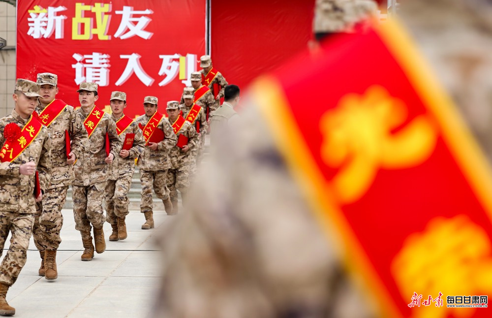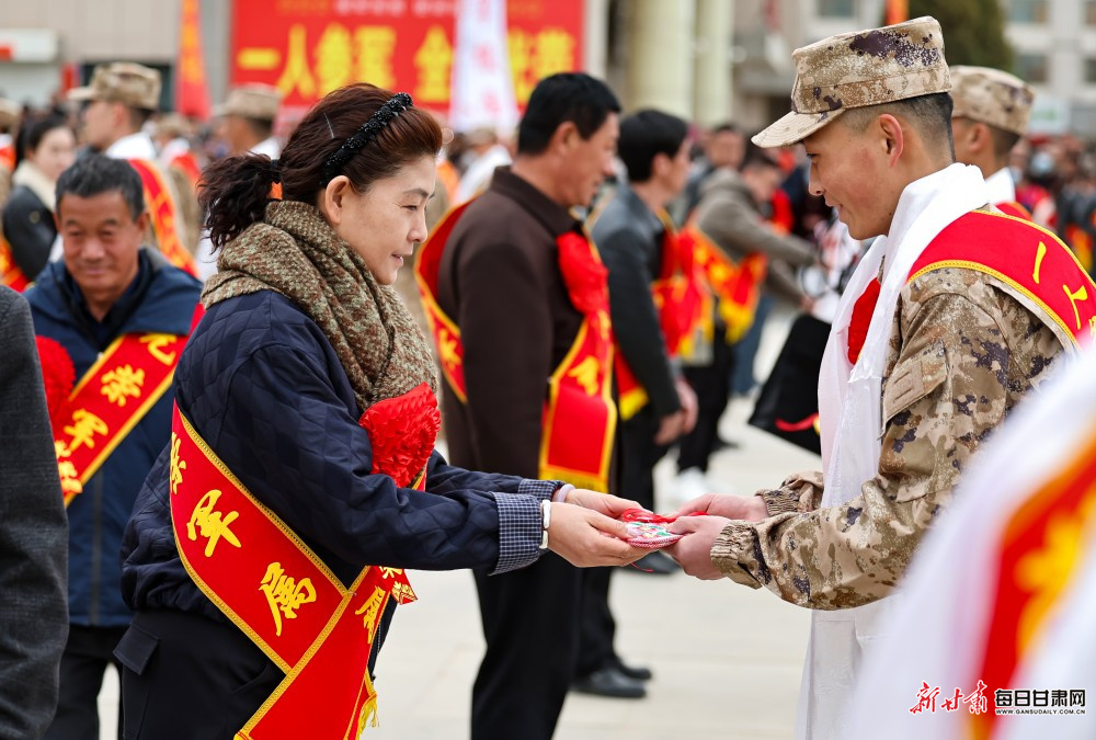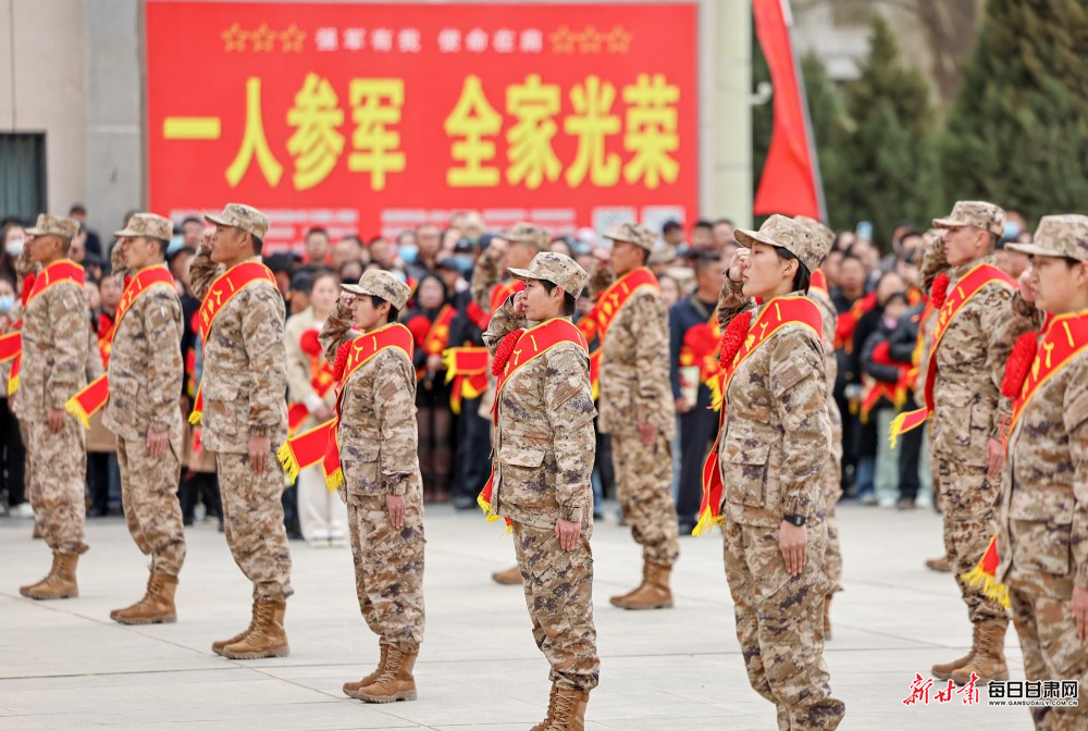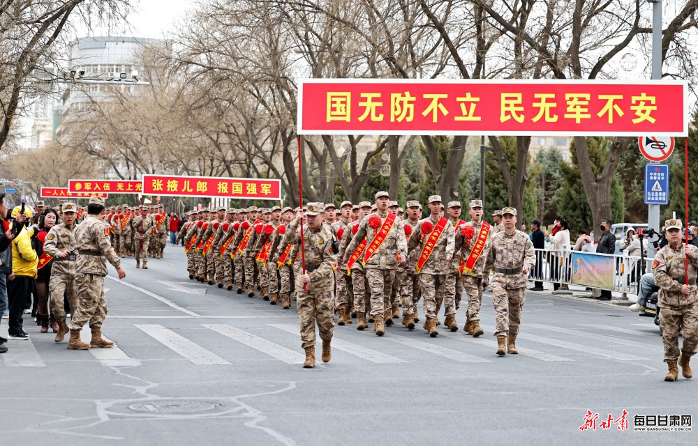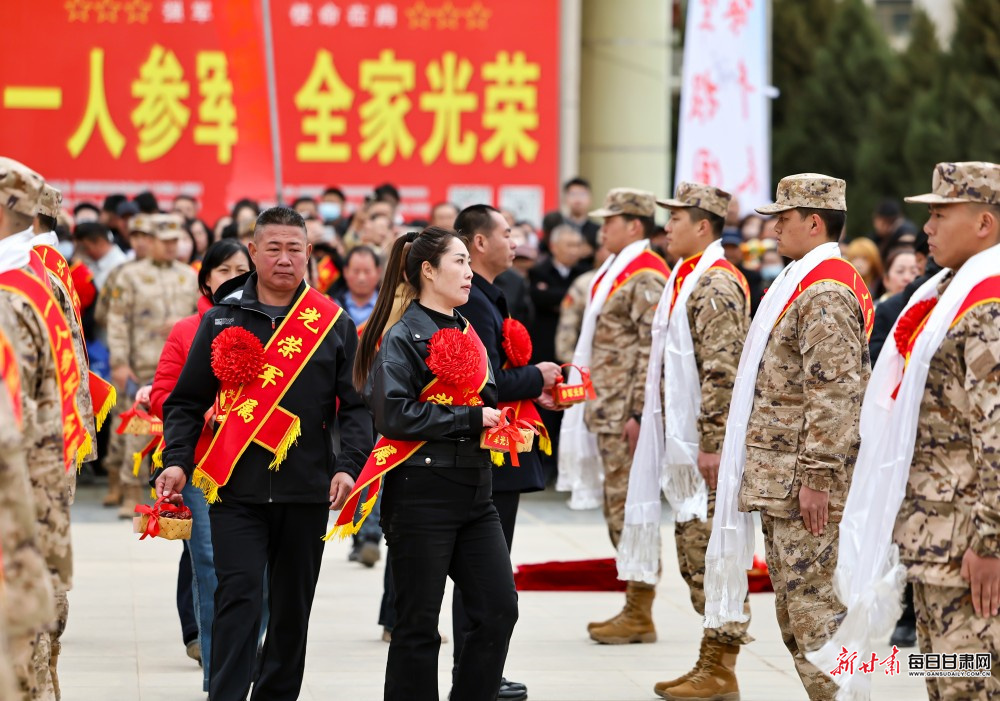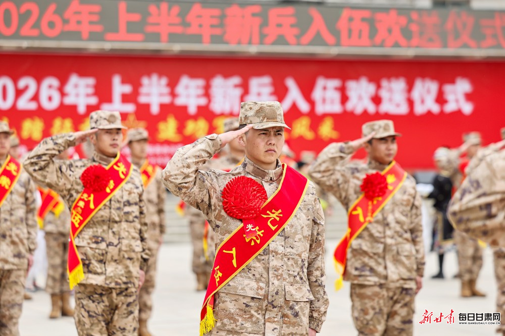 3月16日,张掖市举行2026年上半年新兵入伍欢送仪式。百余名热血青年胸戴红花、身披绶带,以昂扬的斗志整装列队,即将奔赴军营,开启强军新征程。
